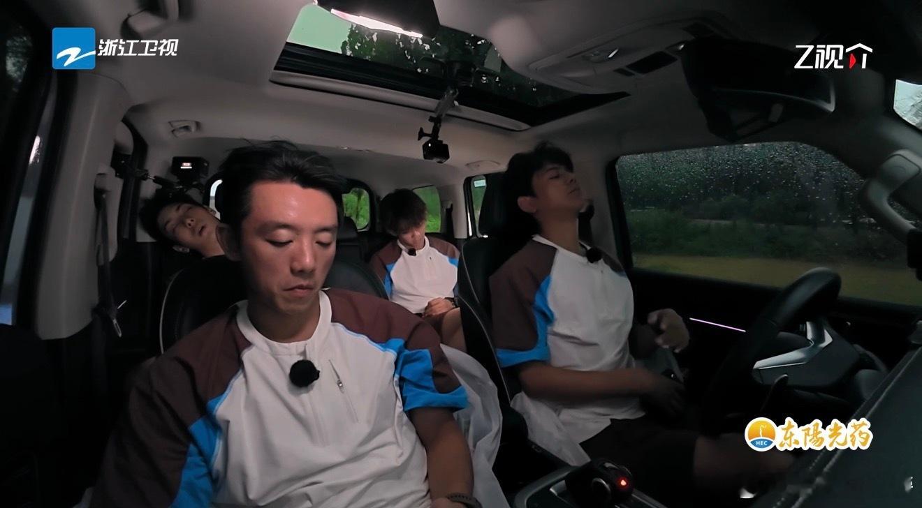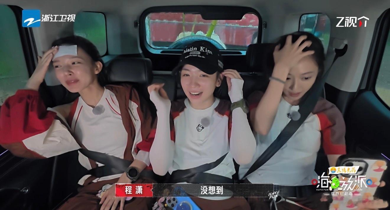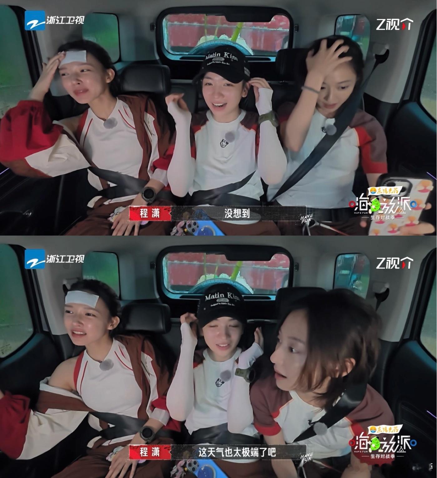 程潇我们录这个节目录得好不体面嗨放派 录制现场暴雨来袭,成员们在车里狼狈躲雨,程