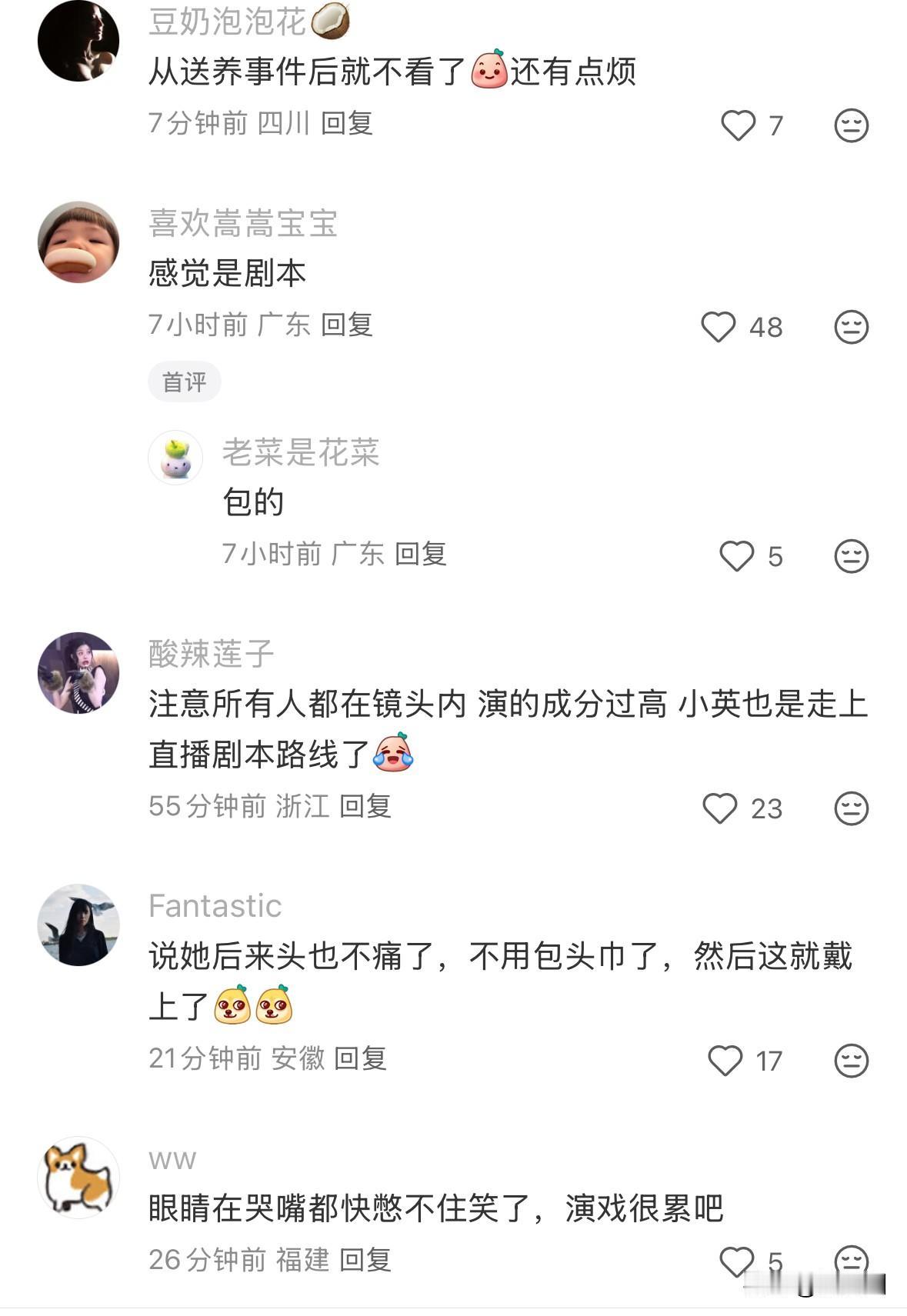这是咋了,有人听懂这场直播了吗? 网友都在吐槽,说一家子都像极了演员,每个人都在镜头前有自己的站位。 小英样子像要哭了又好像在憋笑,之前拿掉的丑头巾又带上了,被说阿拉如有钱买新车她都不花几块钱买个好看的帽子,还在装惨。 也有网友说,自从知道小英把女儿送养给别人了,就对她喜欢不起来了。说她两口子穷吧,这么多年赚的钱也不少了,一有需要还是扮丑扮穷,又到了需要姐妹们支持的时候。网红小英 小英老公 网红小英
