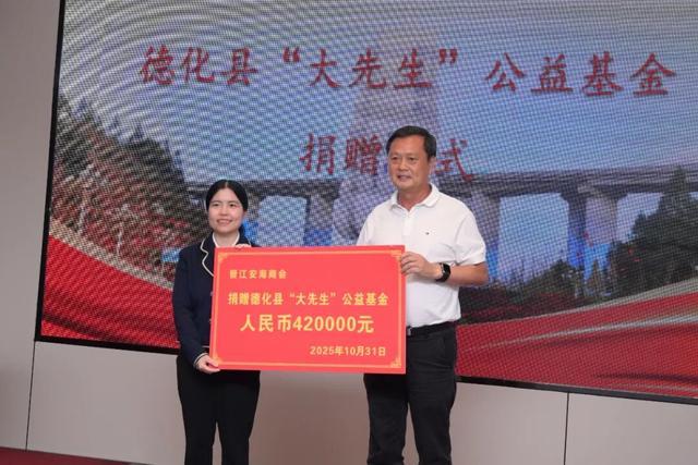 据了解,德化县“大先生”公益基金自设立以来,始终以汇聚社会爱心为核心,重点支持教育发展与医疗卫生两大民生领域。截至目前,基金已累计筹得善款243万元。此次捐赠将进一步推动德化社会事业发展,增进民生福祉。未来,德化将继续以“大先生”公益基金为重要桥梁,用心用情管好每一笔善款、办好每一件实事,让慈善之花在山海之间持久绽放,共同为社会事业发展、民生福祉增进贡献更多温暖的力量。
