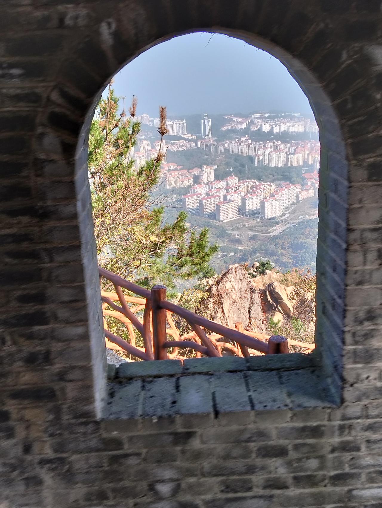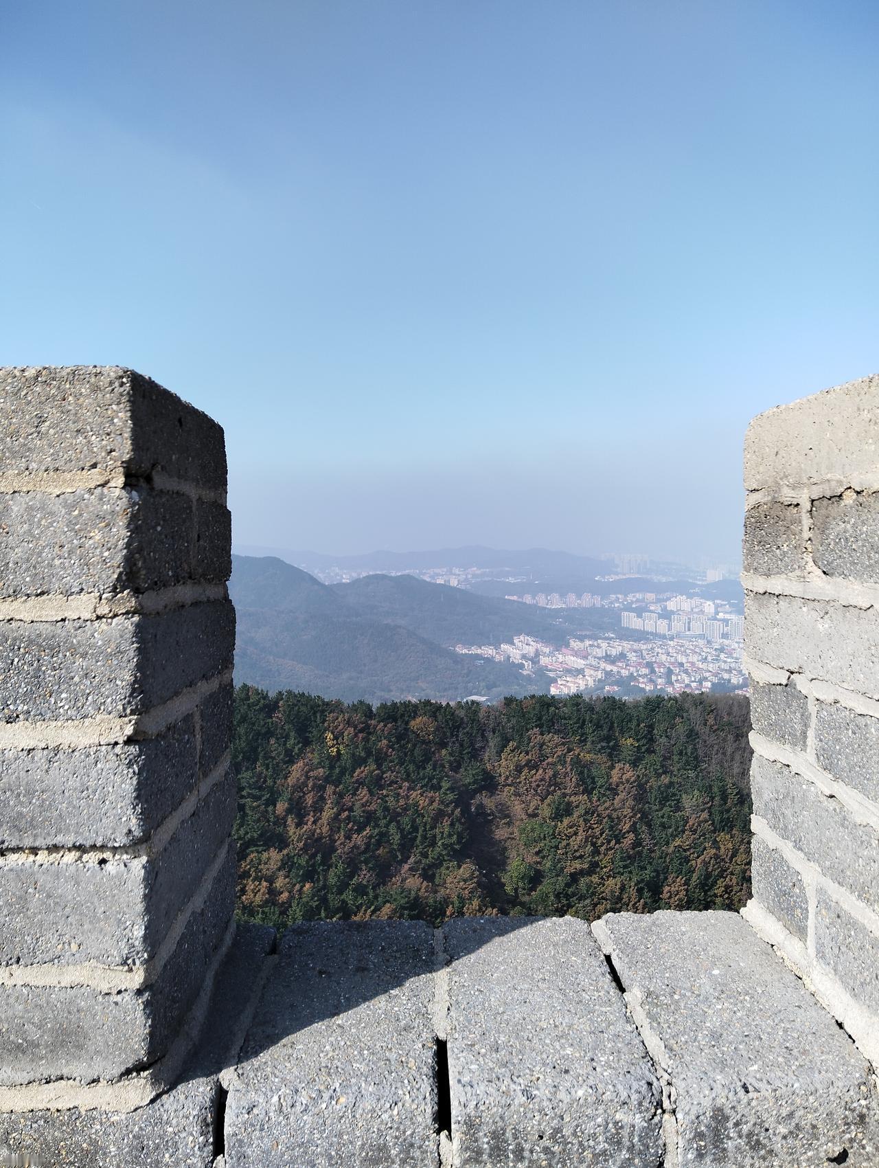 今天上午去爬山,爬的是海拔390米的奇山烽火台。 坐公交车在奇山路站点下车,沿着盘山曲曲折折的公路,步行将近4公里,用时不到一个小时登上烽火台。从台上垛子口,了望郁郁葱葱的群山,阳光灿烂,蓝天白云,呼吸着清新的空气,心情非常舒畅。 抚摸着烽火台古朴的建筑,遥想当年铁马金戈,千百年来,守边的将士,在这里用血汗护卫着祖国的大好河山,不由得肃然起敬。