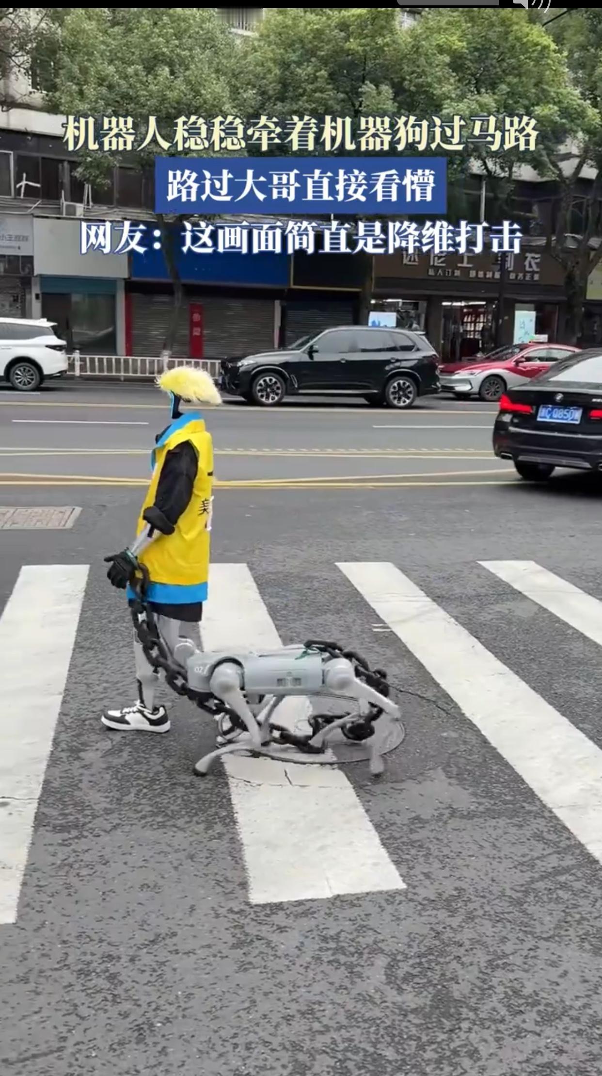 机器人牵机器狗遛弯看懵大爷:这幕科幻场景,藏着最暖的时代答案 公园的黄昏,本是大爷背手遛弯、大妈扎堆跳舞的烟火日常,直到那个金属身影出现——一米多高的仿生机器人握着牵引绳,身后机器狗迈着规整步伐,传感器还不停“打量”路人。镜头里,白发大爷瞬间定格:眉头紧锁、嘴巴成“O”型,手不自觉揉眼睛,仿佛在确认是不是老眼昏花。这幕被拍下发到网上后,机器人牵机器狗遛弯词条直接刷屏,网友笑称“大爷的表情比科技本身还精彩”。 但别只当这是场猎奇表演,这“硬核遛弯”藏着技术从实验室走进生活的密码。机器人身上的激光雷达要实时绘制地图避障,机器狗得靠4D激光雷达在坑洼路面保持平衡,更关键的是两者得靠低延迟通信实现协同——这可是未来机器人团队执行任务的雏形。就像有人说的:“昨天还在科幻片里,今天就走在广场舞队伍旁了。” 那位看懵的大爷,才是最真实的时代注脚。对从工业时代走来的长辈们来说,机器该在工厂轰鸣,从不是会“遛狗”的街头伙伴。这种“懵”,是技术跑太快与认知没跟上的小小鸿沟,但绝不是排斥——你看大爷盯着机器狗的眼神,震惊里藏着好奇,困惑中带着探究。这多像当年我们教父母用智能手机,从“这玩意儿咋打字”到“刷视频比咱还溜”,科技从来都是这样慢慢融入烟火气。 更暖的是,这场景不是炫技,是“科技向善”的预告。就像山东志愿者用热成像无人机,在寒夜玉米地找到走失老人,把科技变成“黑夜里的眼睛”;就像AI能通过宠物摄像头监测健康,帮主人提前发现毛孩子的异常。未来的机器人或许不会都去“遛狗”,但可能会帮独居老人买菜、陪孩子安全玩耍,成为生活里的帮手。 有网友调侃“这俩下雨知道回家吗”,也有人说“感觉未来提前到了”。其实大爷的眼神已经给出答案:从“看不懂”到“习惯了”,从“真稀奇”到“真方便”,这就是科技最动人的样子。 你觉得下次大爷再看见,会跟机器狗打招呼吗?评论区聊聊~