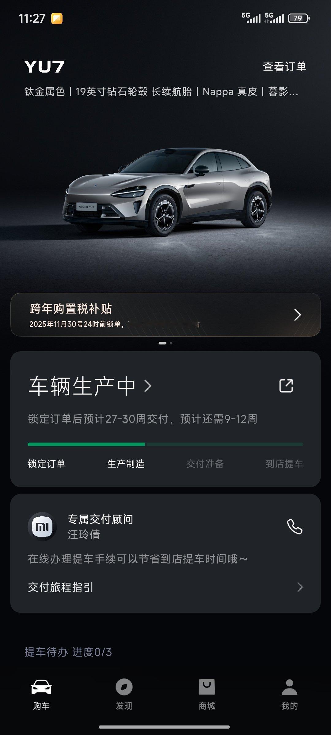 小米汽车交付提速 昨晚悄咪咪跳了两周,大家看看自己提速几周[嘻嘻][嘻嘻]