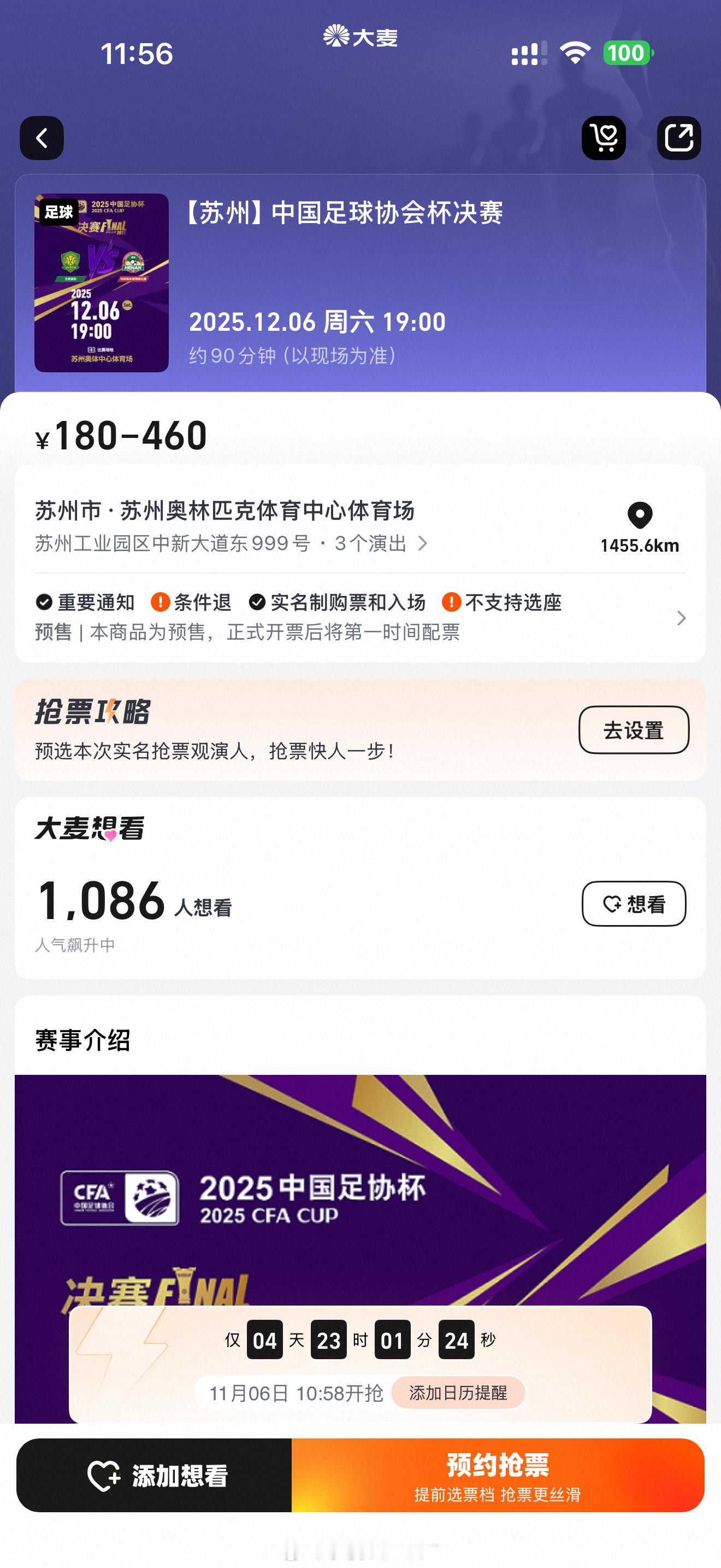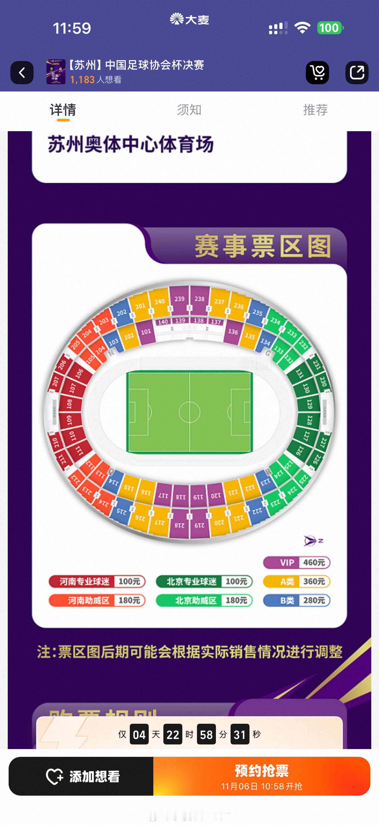 足协杯决赛11月6日 10:58分 票星球 大麦同步开票 具体购票事宜 票价分区