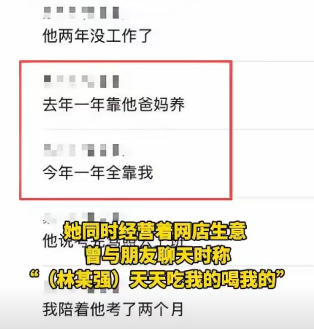 遇害者母亲林女士称,女儿当时正在安徽医科大学护理专业就读,并计划考研,案发当日上午还曾让母亲帮其查找报考所需学历验证材料。女儿与林某强恋爱1年9个月,期间林某强始终未工作。李某与朋友聊天时曾谈起:“(林某强)天天吃我的喝我的。”恋爱期间,李某多次想分手,“林某强就寻死觅活的。”