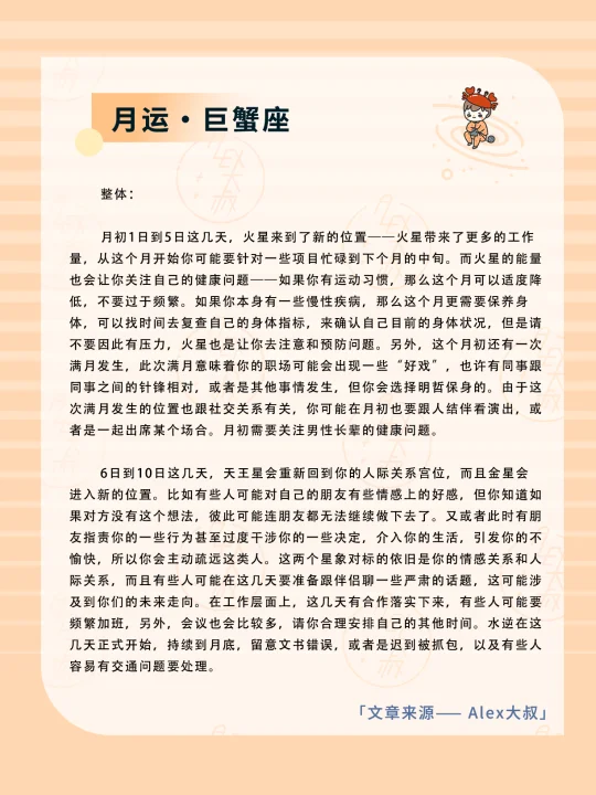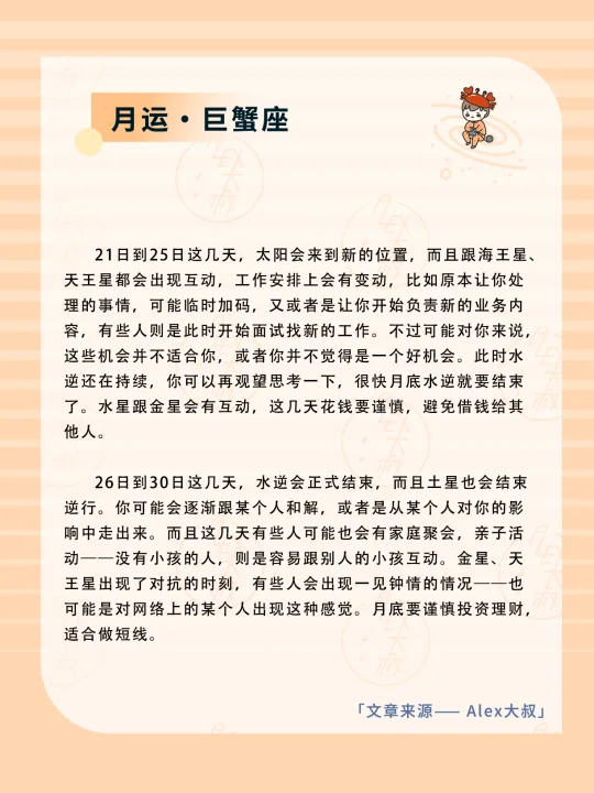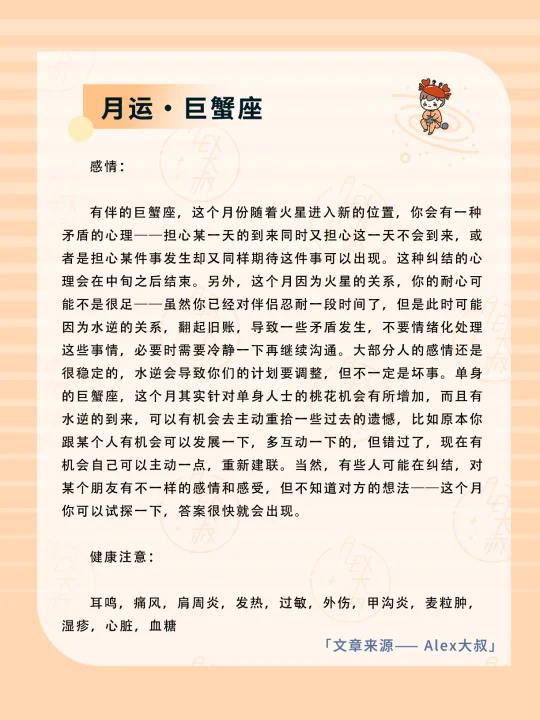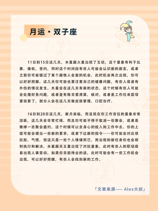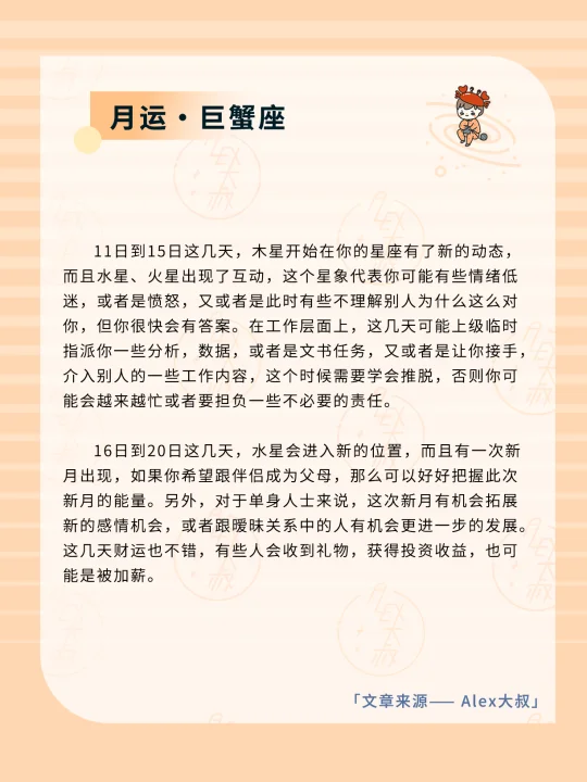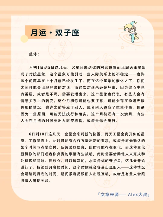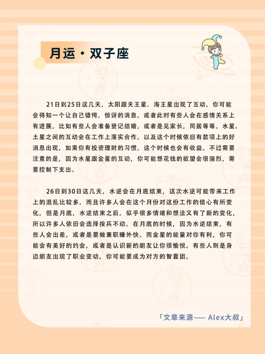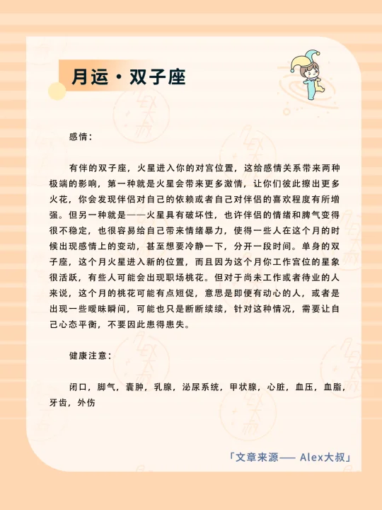 ALEX大叔 我的星座 星座运势 双子座运势 巨蟹座运势