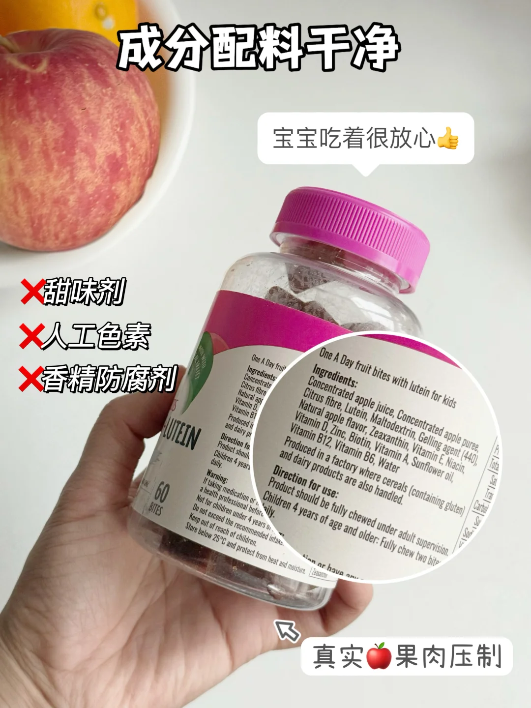 拜耳这款儿童叶黄素真果肉维生素是她们班上其他宝妈给我推荐的