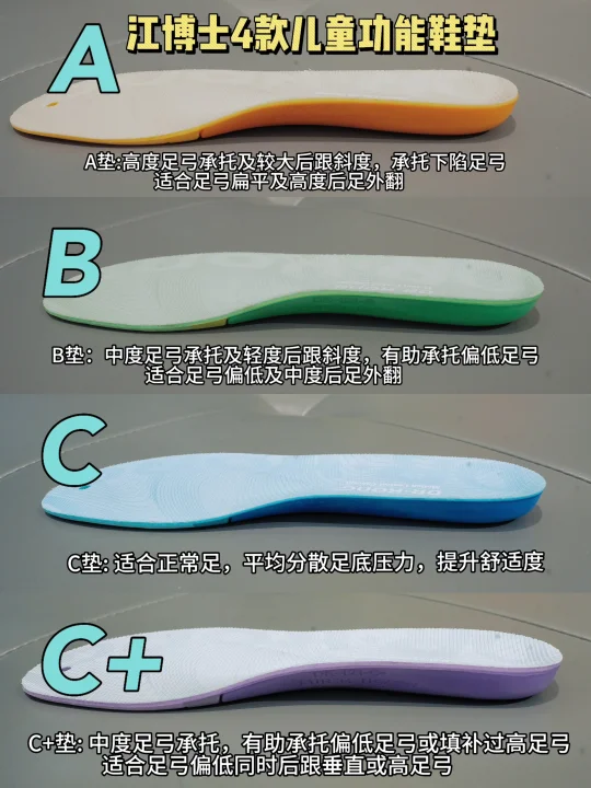 验脚过程像个小科幻片~多部深度相机扫描立体脚型,蓝光一闪,结合AI智能算法评估,几分钟就出了报告!江博士的鞋垫真的很专业,有A/B/C/C+四种儿童功能鞋垫,分别适配不同足型,能针对性地呵护宝宝的小脚。结果显示宝宝适合高度足弓承托A垫,适合足弓扁平及高度后足外翻的足型,运动时能帮助调整生物力线,提升舒适度!