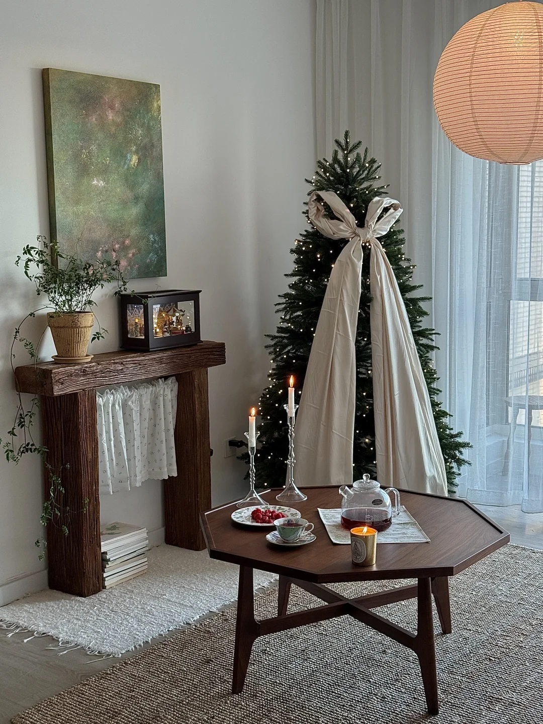 把圣诞树移到了客厅 圣诞树和我新定制的壁炉还蛮搭 最近又变更了一下客厅的布局 沙发移到了另一边的墙上 下午在家里煮了热红酒果茶 喝着热气腾腾的茶,望着窗外的落日 在客厅里看着中国和大裤衩 秋日里的一个普通的下午 竟然也能让人觉得如此的幸福