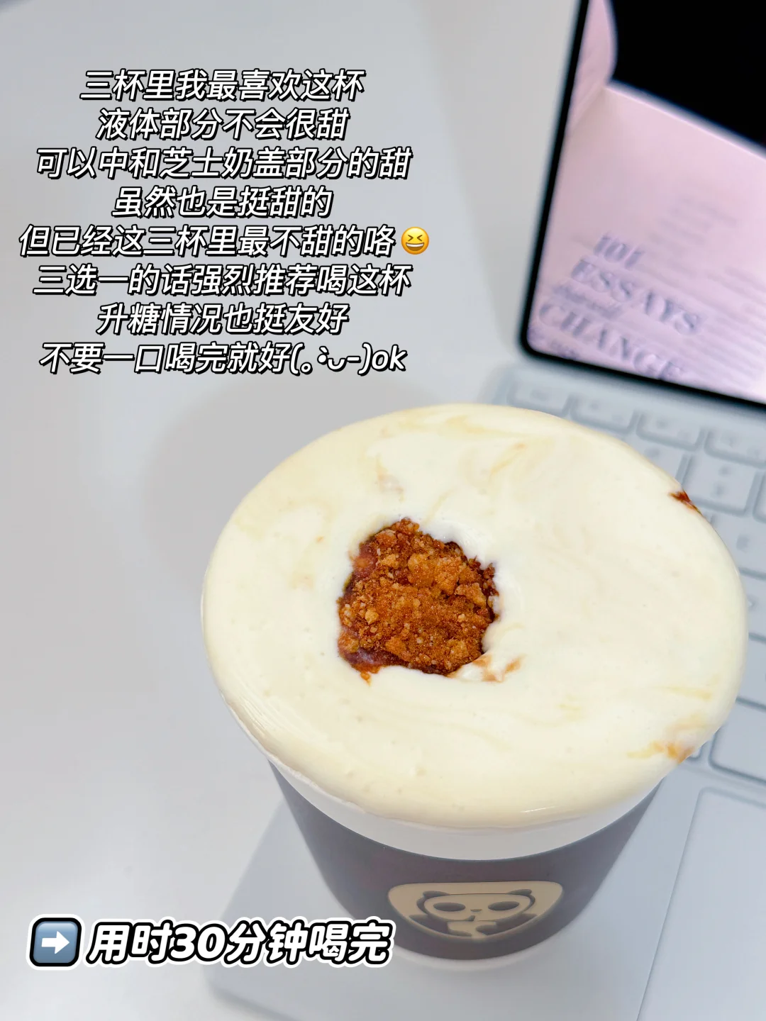 三杯里我最喜欢这杯[害羞R]液体部分不会很甜,可以中和芝士奶盖部分的甜,虽然也是挺甜的,但已经这三杯里最不甜的咯😆