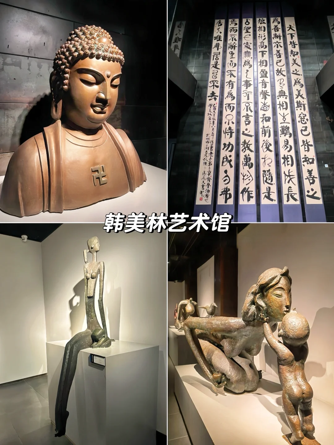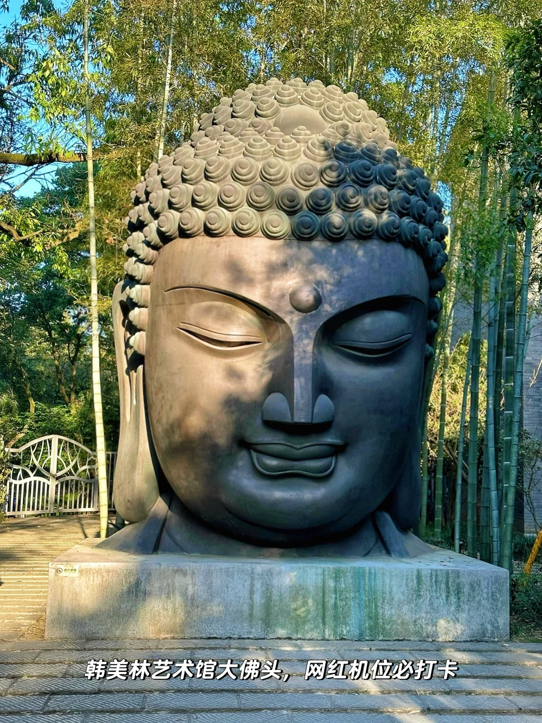 🌟馆内有2000余件展品,涵盖雕塑、绘画、书法、陶瓷等领域。馆外竹林6米高大佛头,是必打卡机位!📸