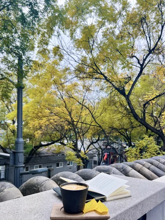 胡同咖啡上房揭瓦,老外蛮多但室内班味略重,天气好在二楼坐坐晒晒太阳就很舒服,鼓楼东大街的国槐11月会变黄,铁美!