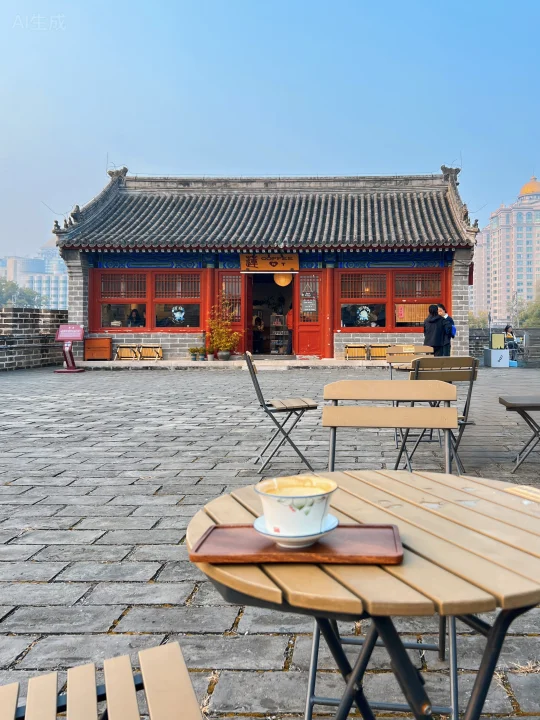 在明城墙上 !以前是存放工具的小屋子,可以看到中国尊、北京站、角楼,喝咖啡等日落,看夕阳给残破城墙渡上金黄,感觉北京真好啊!