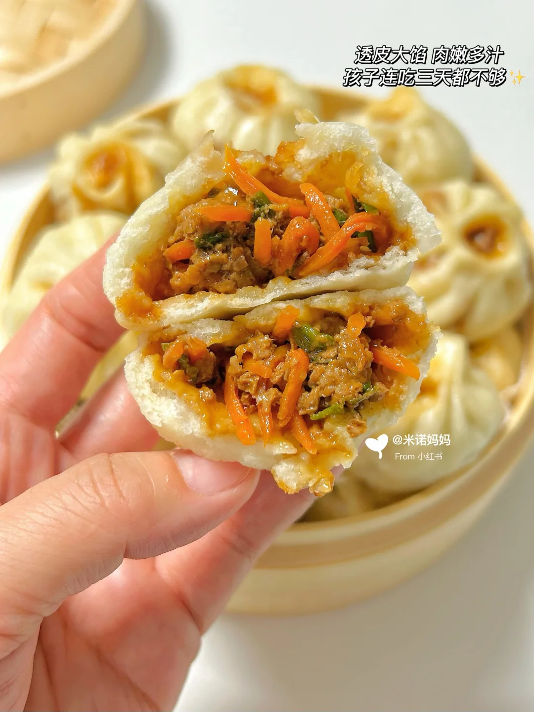 孩子连吃三天的牛肉胡萝卜包子,个个透皮大馅,鲜香爆汁,大家一定要给宝宝安排上呀,这个搭配真的巨好吃,搭配粥或奶做早餐大人孩子都超爱,营养又美味,快去做呀[拥抱R]