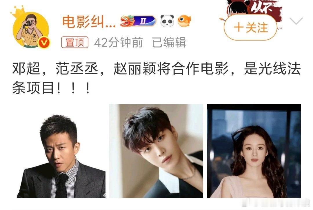 光线法条系列电影11月中旬开机,主演:邓超、范丞丞、赵丽颖!