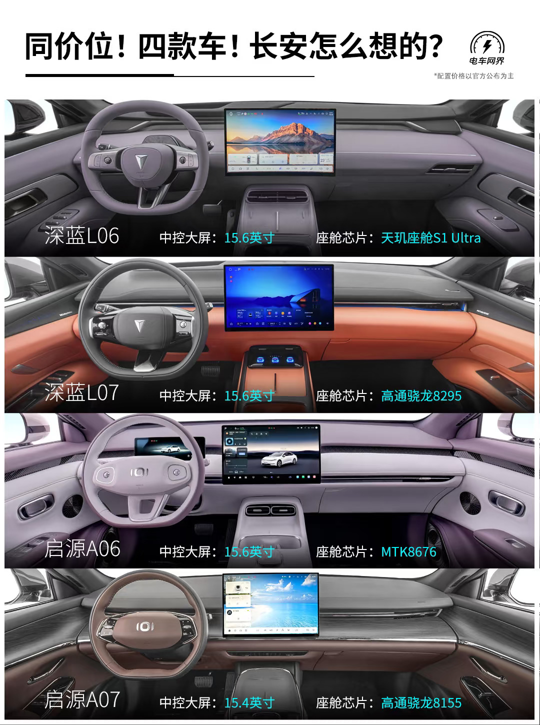 转头一看,同属长安的启源A06预售价11.99万起,启源A07也摆出12.99万的架势。