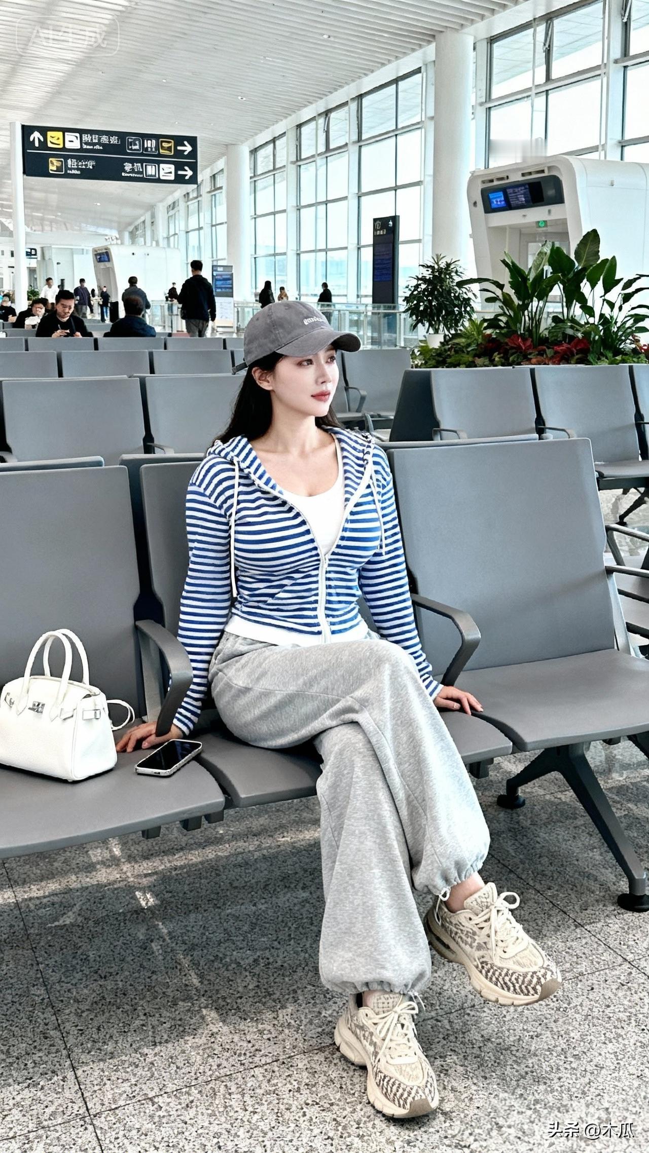 机场休闲风穿搭太绝了!AI生成的这套look,日常出街也被问了800次链接~ 在机场候机也能穿出松弛感!蓝白条纹连帽衫+灰色束脚运动裤,搭配老爹鞋和小白包,舒适又显活力,赶飞机再也不用穿得“皱巴巴”啦~ 简约休闲感穿搭 如何做到简单时尚的穿搭方式 职业女性穿搭分享 自然又不失韩系清新感的穿搭 你们喜欢这种休闲风穿搭吗?评论区说说你们的机场穿搭小心机~