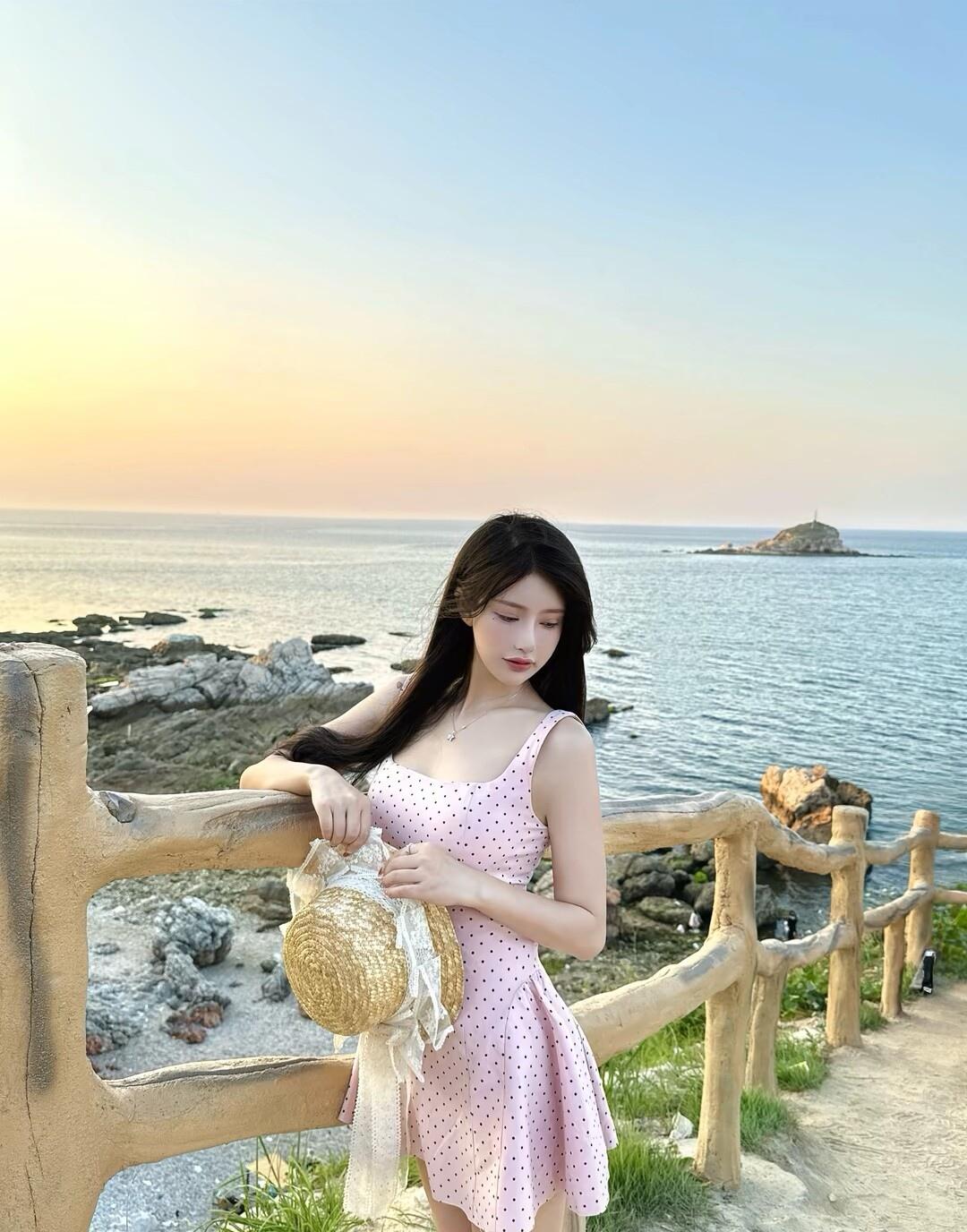 海边漫步,轻纱飘逸,感受海风拂面,享受宁静时光。