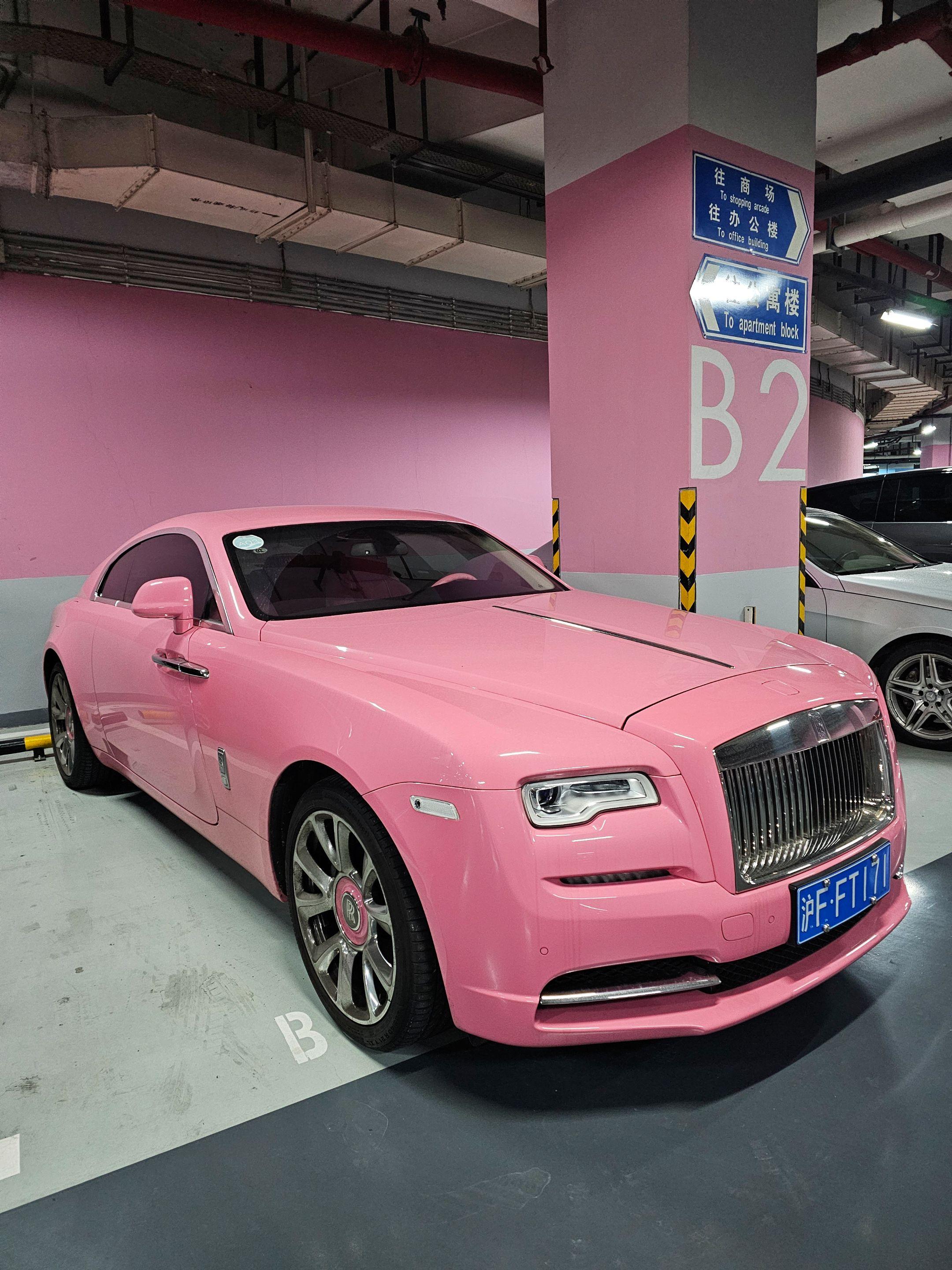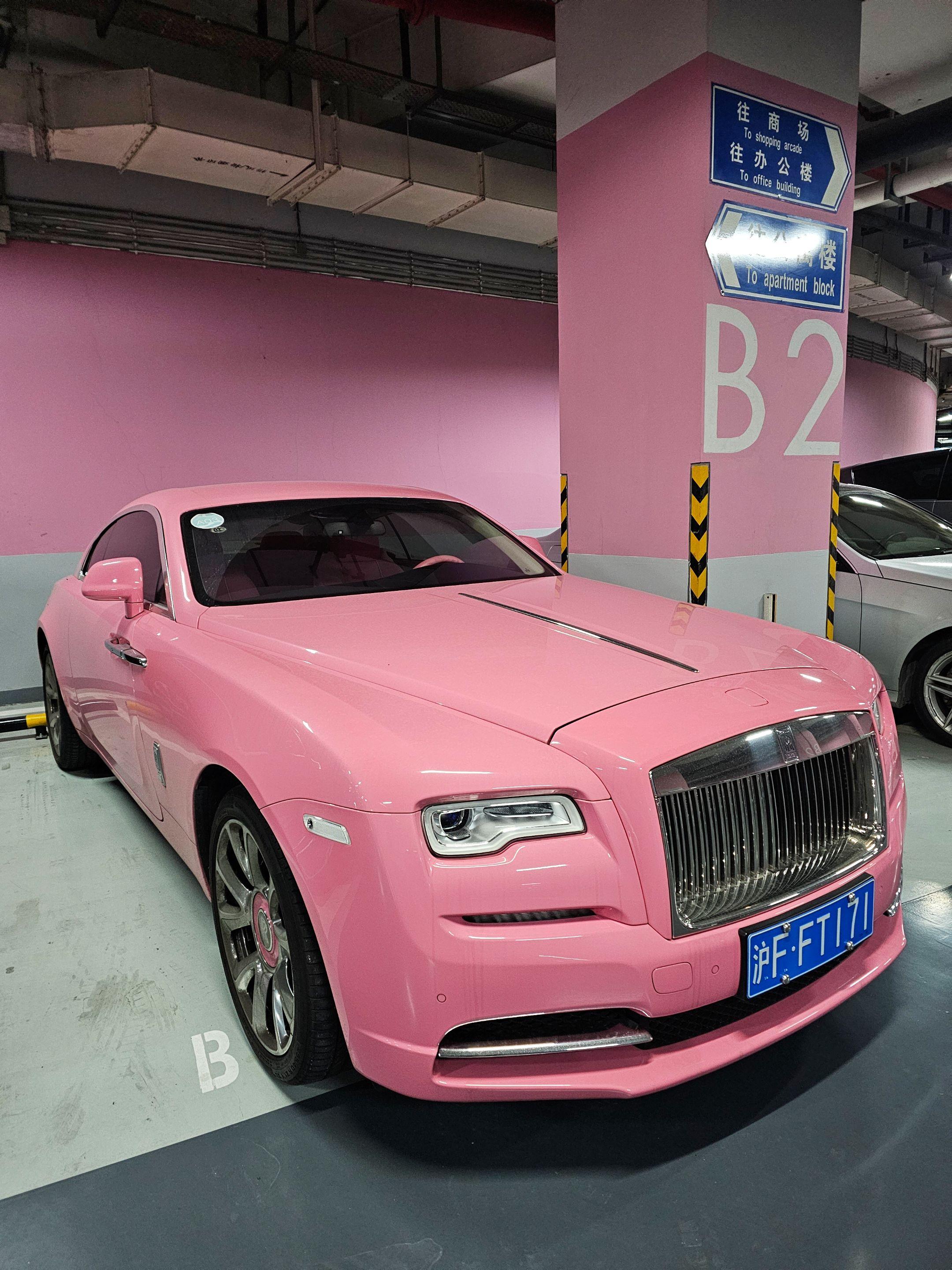 在上海某地库偶遇小姐姐的粉色劳斯莱斯魅影,实车看到优雅奢华永不过时!