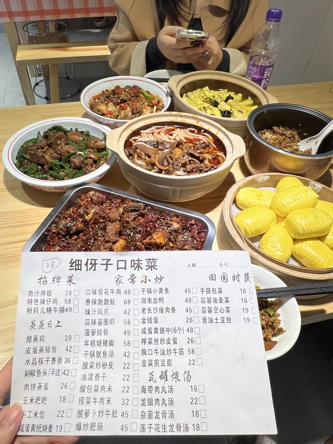 啊啊啊这种小巷子里的苍蝇馆子名不虚传!! 直接被生椰拿铁包圈粉啦!!! 反反复复也就吃了20来次吧! 每次过来都惊喜感满满!!老板很注重菜品的研究!! 工作日过来都是坐得满满当当的!! 牛杂钵炖粉、手工蛋卷这种土钵菜太适合冬天了!! 泡菜牛肉、辣子鸡又香又下饭。真的不输笨罗卜📍细伢子口味菜