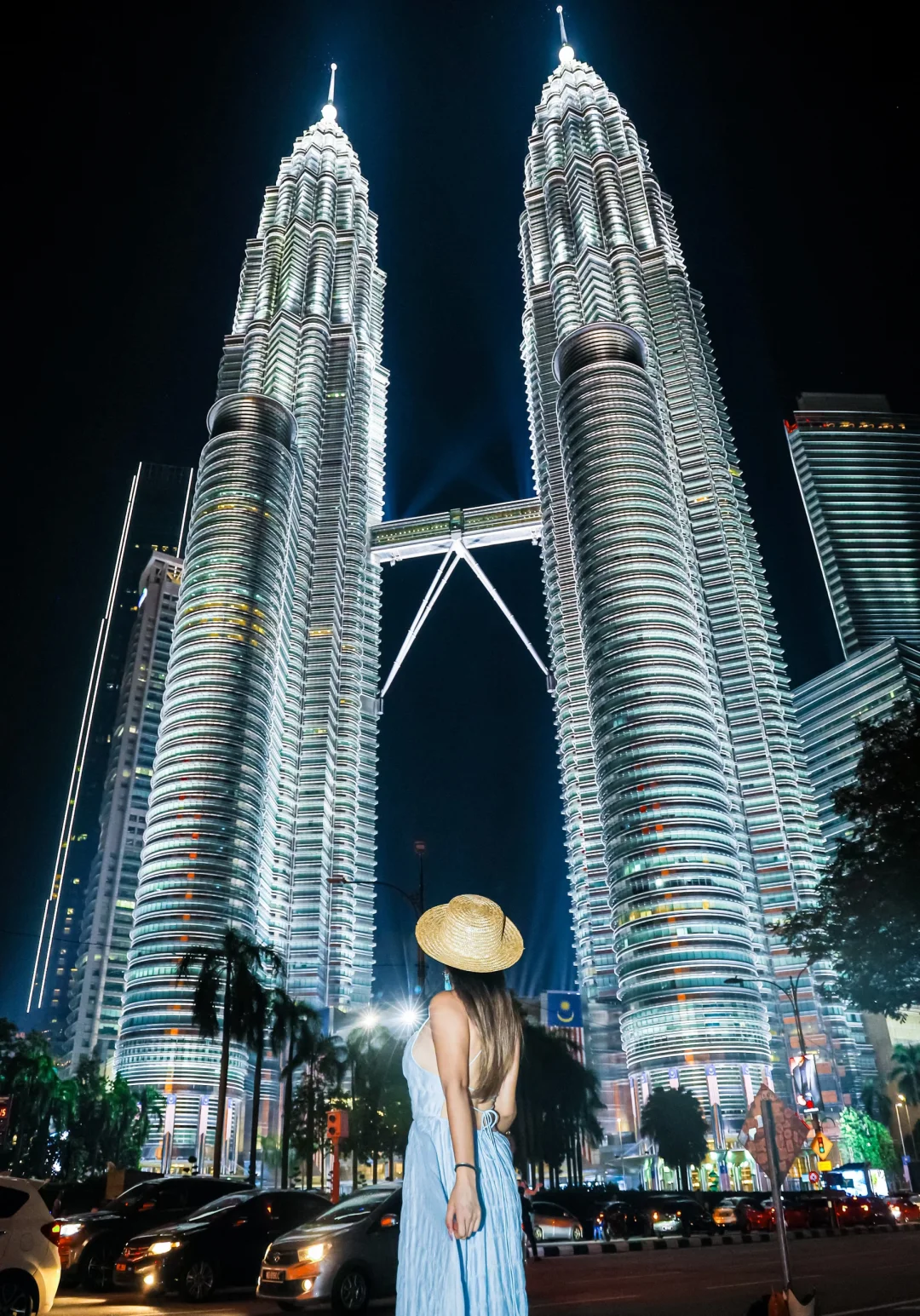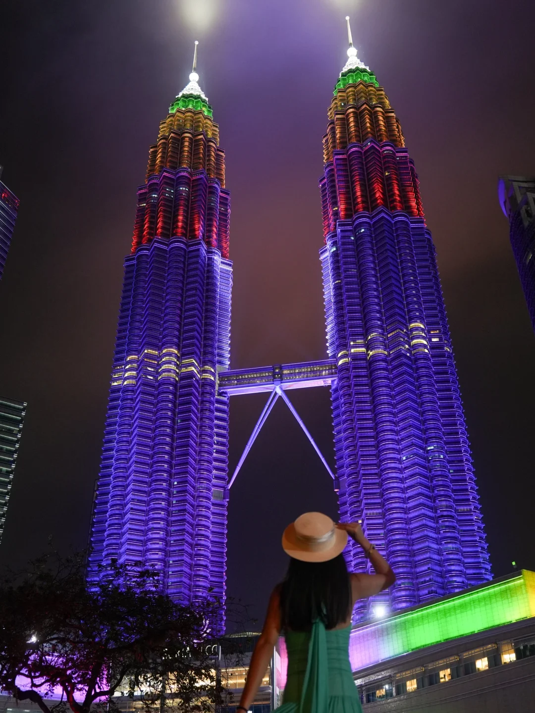 9️⃣天桥双子塔同框夜景🗺️ 莎罗马人行天桥