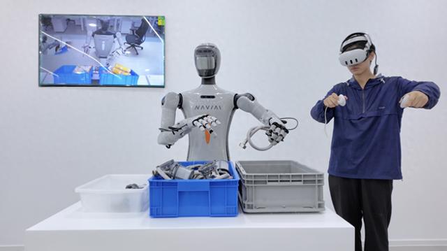当你来到“具身智能验证场”,一进门,上前迎接的并非传统印象中的礼仪人员,而是“海曙智造”的人形机器人NAVIAI——它不仅具备拟人动作姿态,还可以流利的语言与你进行互动。在其引导下向里走去,工厂、家庭、商超等一系列场景尽现眼前,一众人形机器人“员工”在其中各司其职。