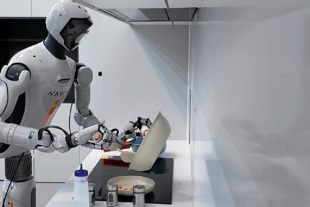 在家庭,凭借多模态感知技术和端到端感控一体算法,NAVIAI不仅可胜任清洁台面、熨烫衣物和浇花等多种家务活,甚至还能通过采集更多长序列、复杂家庭任务数据并经训练学习,烹饪出一桌营养均衡的饭菜。