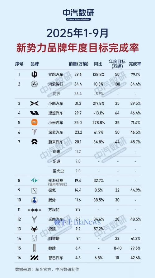 据中汽数研公布1-9月新势力品牌年度目标完成率数据显示,在前三季度的市场竞争中,部分品牌距离年度目标仍有较大差距。可见,这次“购置税补贴”也是一场激烈的竞争。