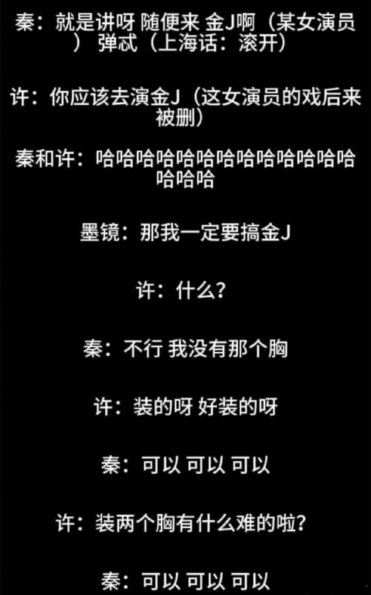 王家卫疑似对金靖开黄腔目前爆出来的王家卫吐槽过的艺人有:金靖:我一定要搞金j;唐