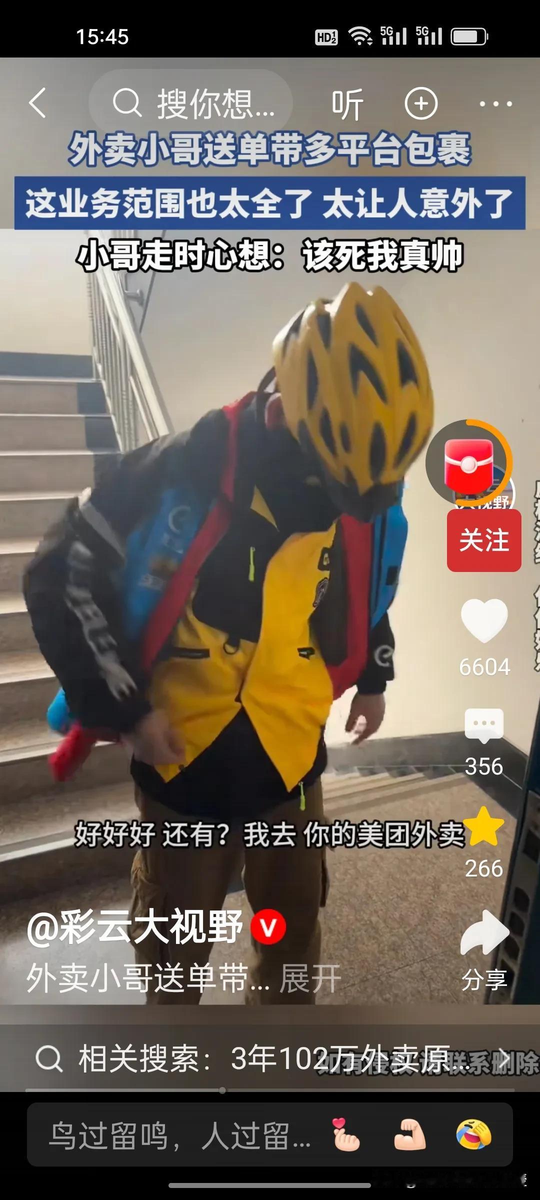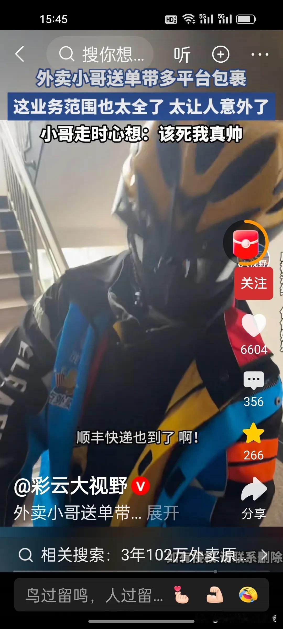 这四家外卖快递员其实真的可以穿如下图的衣服。网友点了几份外卖,美团,饿了么,京东,还有顺丰快递,来了一个快递小哥,穿了四件公司的衣服,四份外卖快递都是他一个人送。确实有闪送快递员也接外卖单子,让自己收入多一些。就跟网约车的司机一样,会好几家平台接单子。 其实三家外卖巨头真的没必要争第一,大家抱团发展,把客户服务好才是上策。建议真的可以出台四合一的服装供兼职快递外卖员使用,而且搭配起来确实是城市中穿梭的一抹亮色。