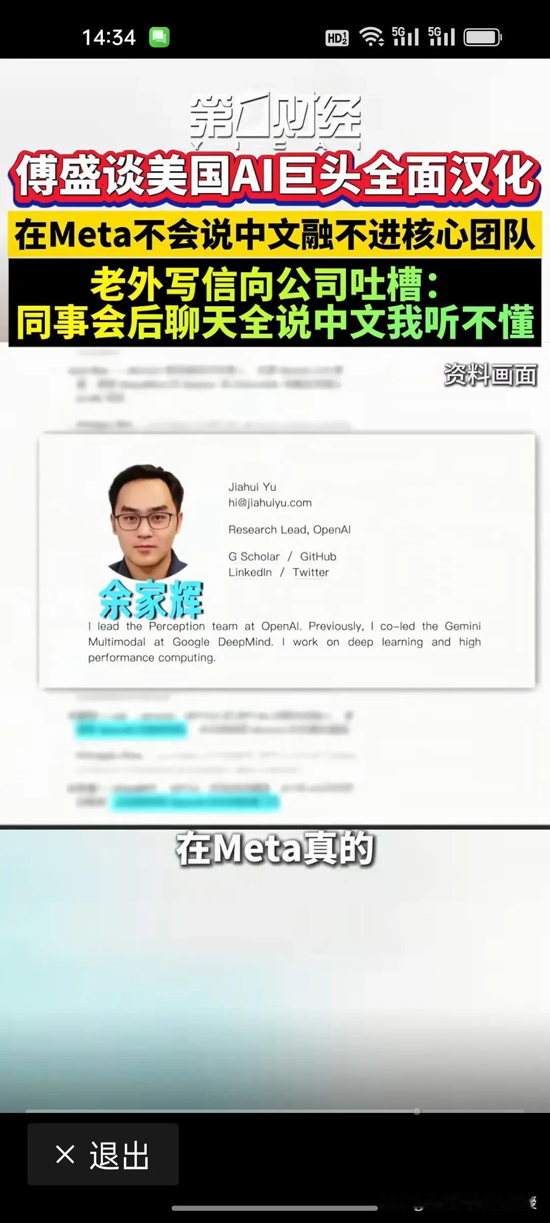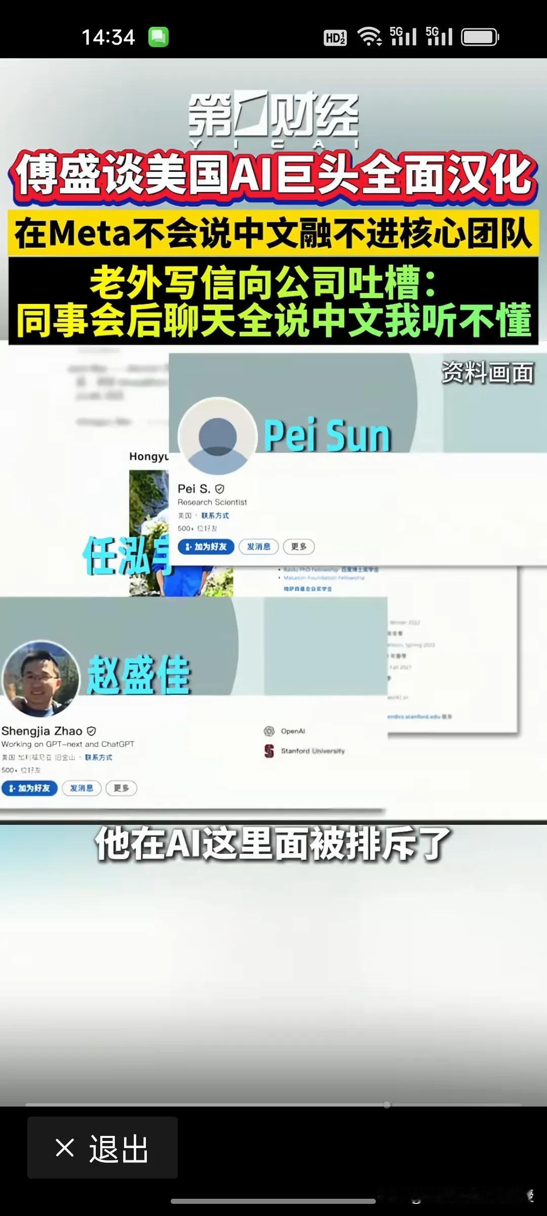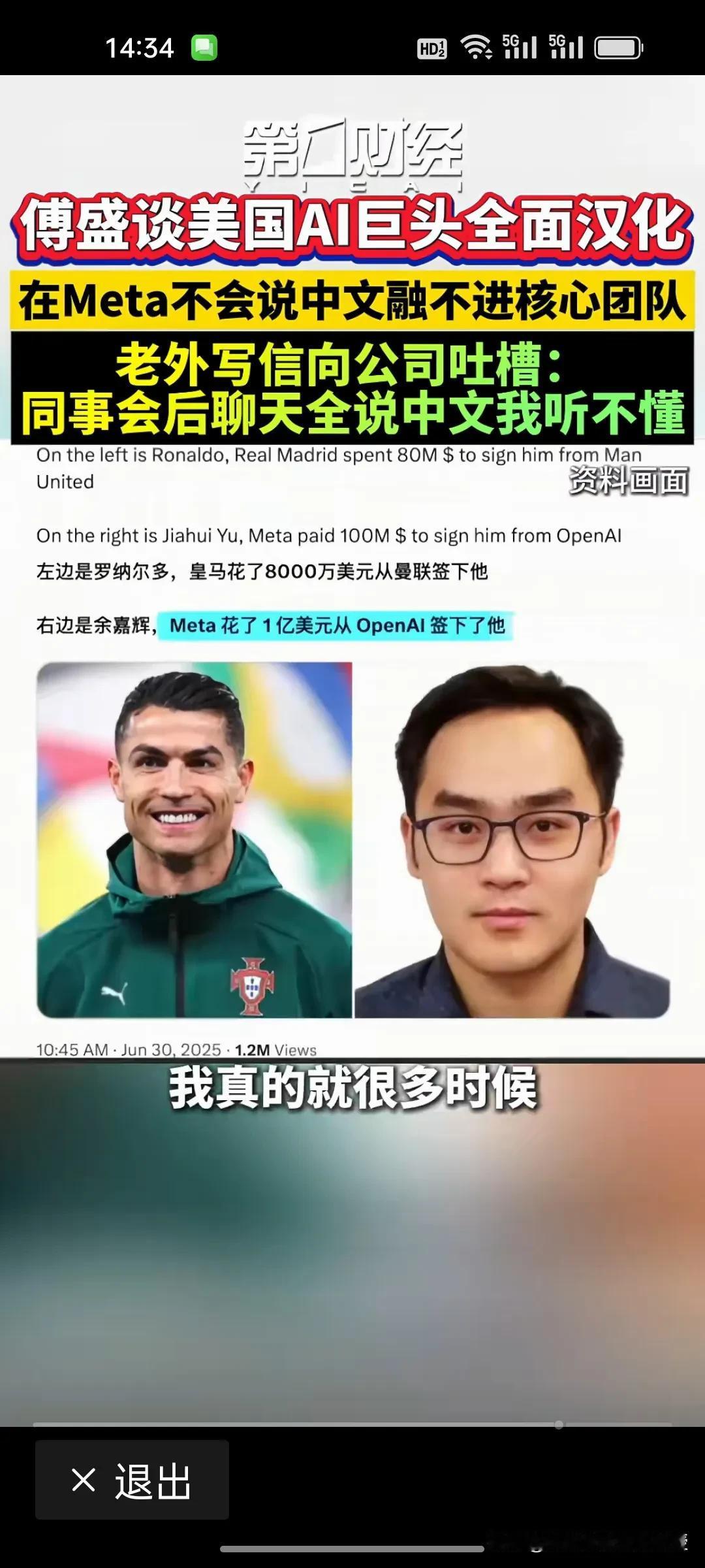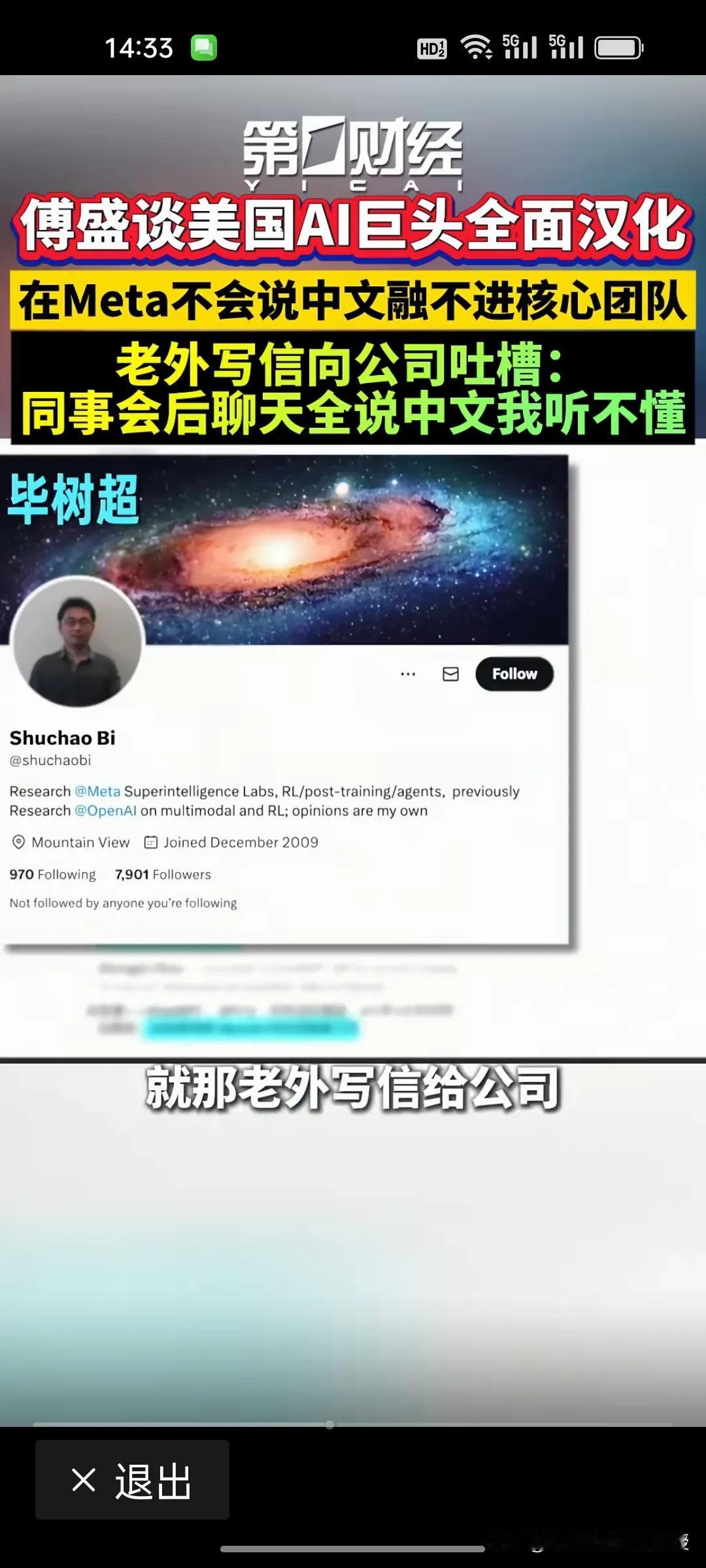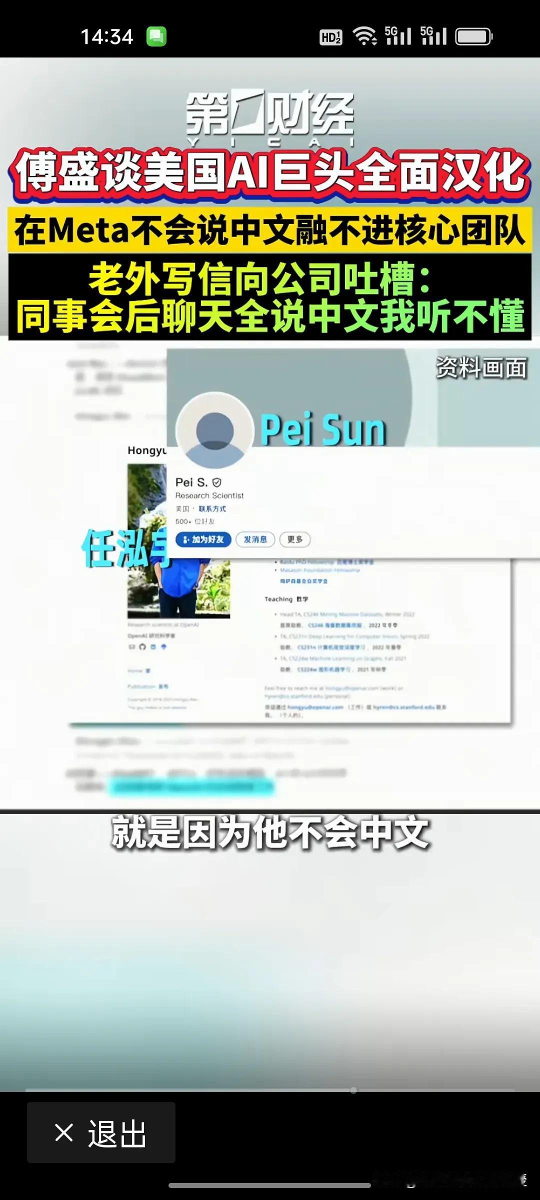 在Meta工作,不会说中文会被排挤?这是真的。猎豹移动董事长傅盛说一位美国工程师写信向公司吐槽,同事聊天都说中文,但是他听不懂,感觉被同事排斥了。部门里都是中国人,不会说中文就融不进核心团队。 之前扎克伯克就花了一亿美金签字费挖来了中国AI天才工程师担任Meta大首席科学家,现在AI领域确实是中国人走在世界最前沿,已经赶超美国。可见,未来所有美国的AI本土人才学中文是大趋势啊!