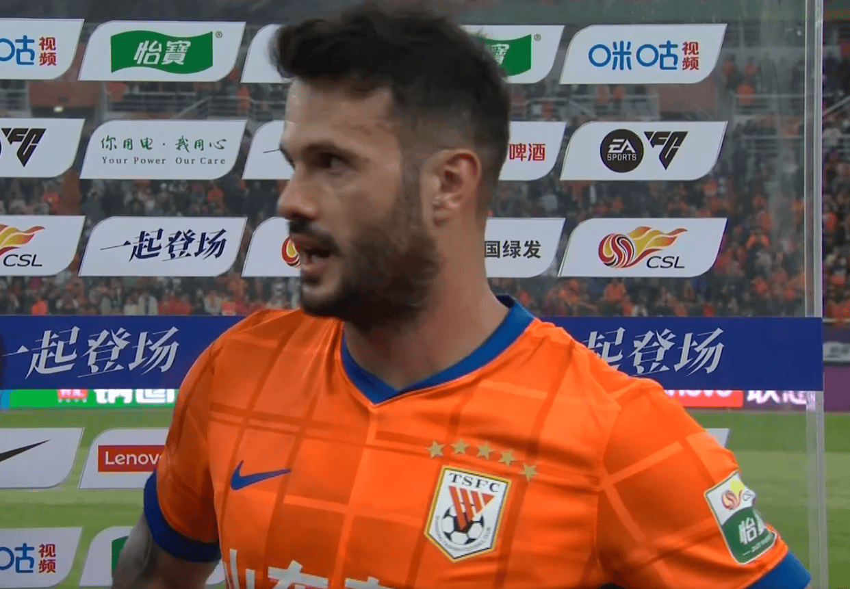 虎扑11月01日讯中超联赛第29轮,山东泰山2-1天津津门虎,赛后山东泰山球员卡扎伊什维利接受媒体采访。