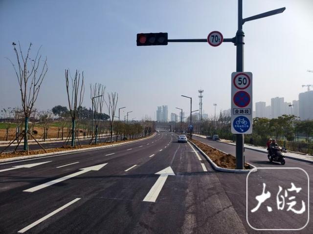 11月1日中午时分,大皖新闻记者驱车来到在滨河南路三期工程(新城路-交通路)路段看到,崭新的沥青路面已经铺设完毕,道路标线施划和交安设施均已施工完成,施工人员正在对道路进行冲洗,有园林人员正在对行道树进行修整,已经有车辆在信号灯的指令下有序通行。