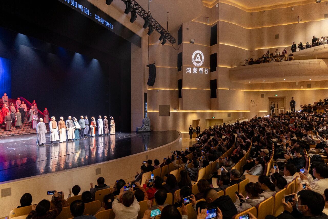 作为北京人艺建院70周年后的新排作品,《正红旗下》由院长冯远征与青年导演闫锐联合执导,濮存昕、杨立新、梁丹妮、王茜华、王刚、傅迦、吴姗姗、刘辉、雷佳、杨佳音等老中青三代演员同台献艺。四十余位演员以细腻传神的表演,将晚清老北京城的生活百态鲜活呈现在舞台之上。开元大剧院1200余人的大剧场座无虚席,红色屋顶与琉璃瓦构成的写意舞台现场亮相,地道的京腔京韵中,“洗三”仪式、小年祭灶等老北京习俗被生动还原,“岳母刺字”的家国情怀、姑母与大姐婆婆的诙谐斗嘴交替上演——既有市井生活的烟火气,也有民族危亡背景下的众生相。而濮存昕饰演的“老舍”穿梭于时空之间,以自传体视角串联历史与当下,最后一段独白更将现场情绪推向高潮,谢幕时经久不息的掌声与喝彩,响彻整个剧场。