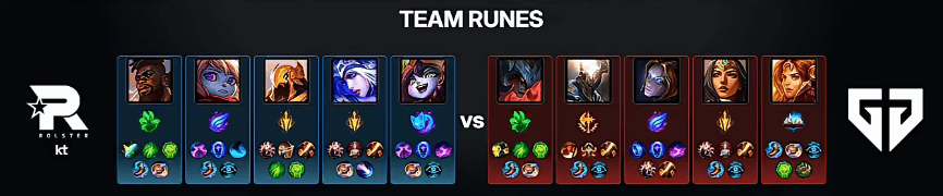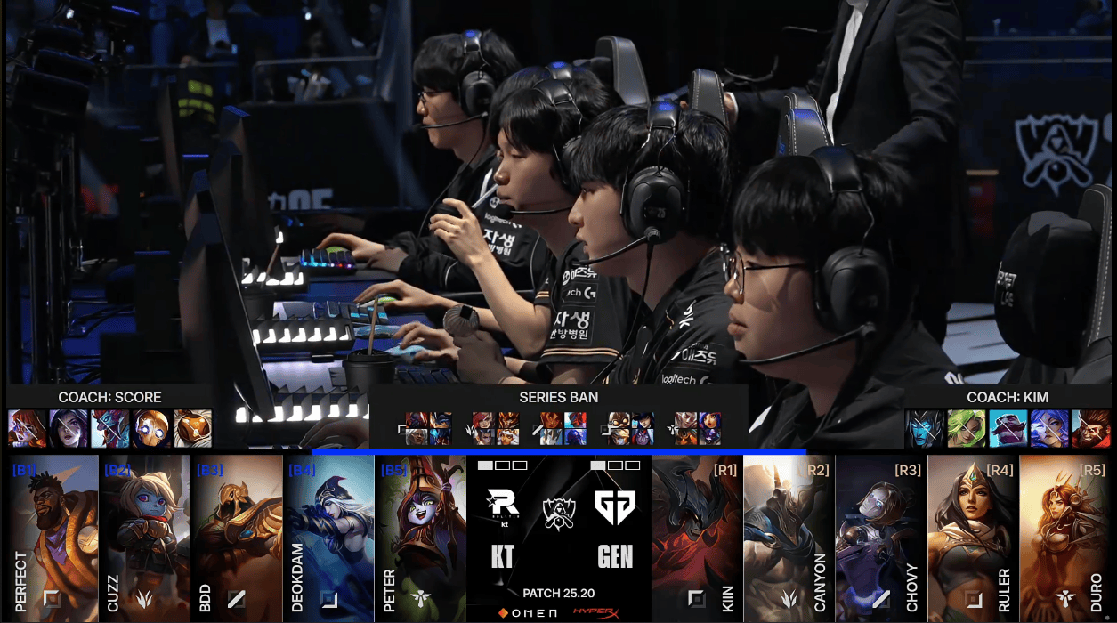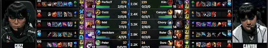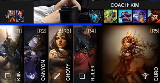 GEN选用:Kiin剑魔;Canyon潘森;Chovy发条;Ruler希维尔;Duro蕾欧娜