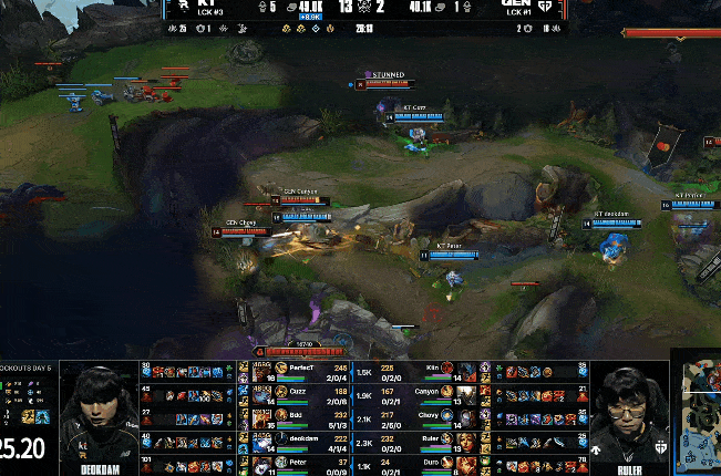 22分钟,Cuzz完美大招锤飞潘森,KT拿下龙魂随后团灭GEN