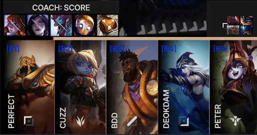 KT选用:PerfecT奎桑提;Cuzz波比;Bdd沙皇;deokdam寒冰;Peter露露