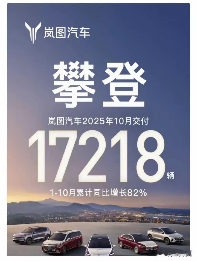 岚图10月销量又创新高!岚图现在应该是东风发展最好的板块了吧! 岚图10月销量超过了17000台,销量应该是创了岚图新的销售记录了,岚图应该是已经成了,完全走上良性发展的道路了。 照这个趋势下去,随着岚图泰山再上市,月销2万也不是梦啊,岚图应该算是央企汽车企业中发展最好的高端新能源了吧,也算了立了一个标杆啊。 你感觉11月份岚图的销量能冲上2万吗?