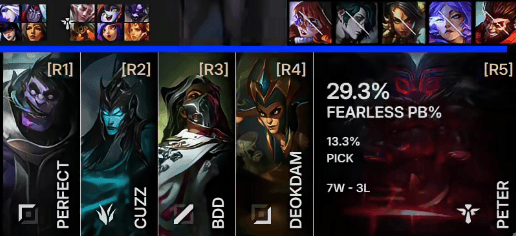 KT选用:PerfecT奥恩;Cuzz蒙多;Bdd蛇女;deokdam卡莉斯塔;Peter烈娜塔
