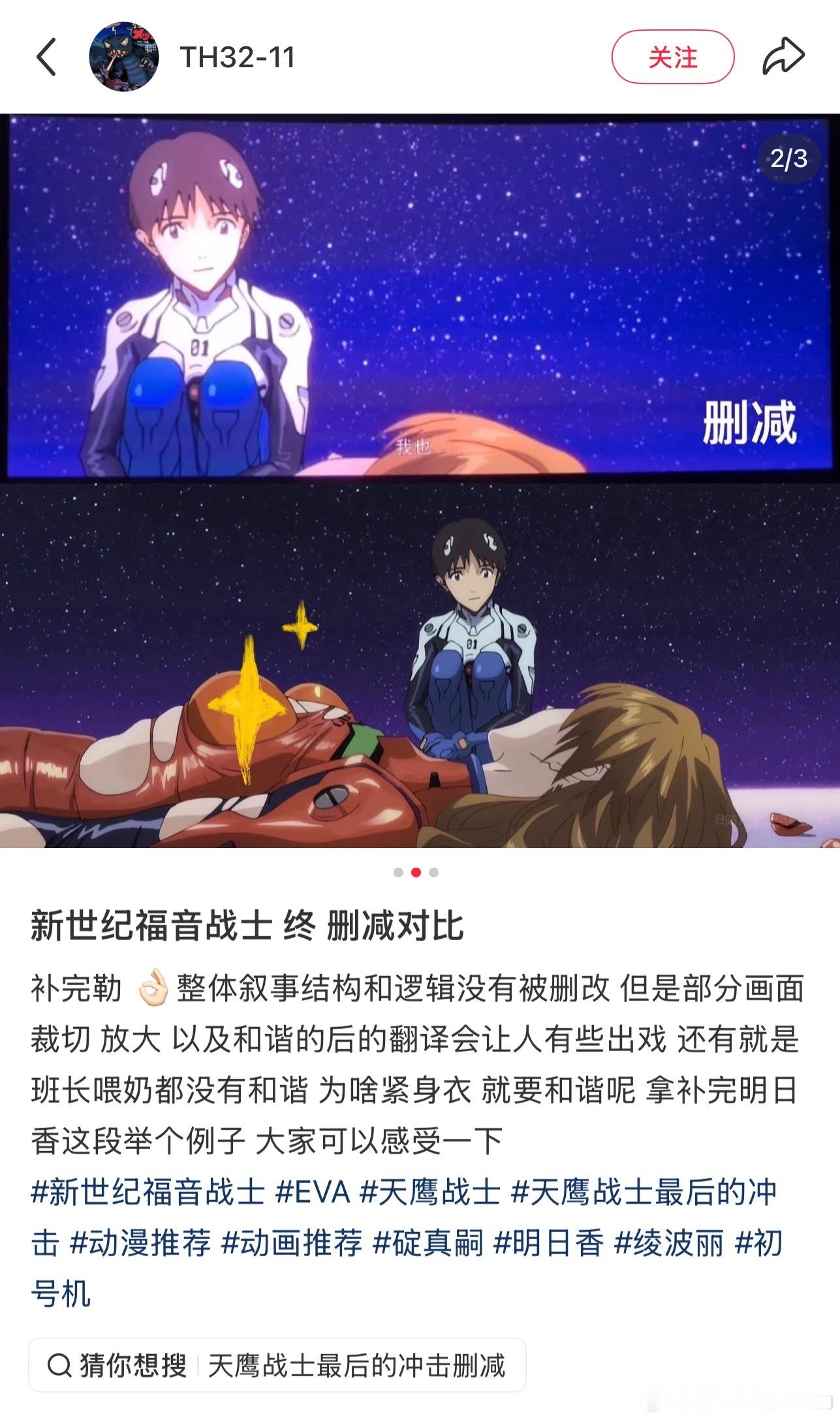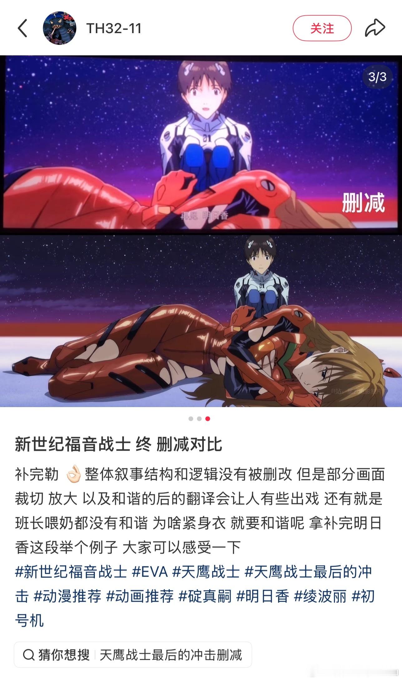 看到了eva剧场版这个删减对比,就想说至于吗。。。
