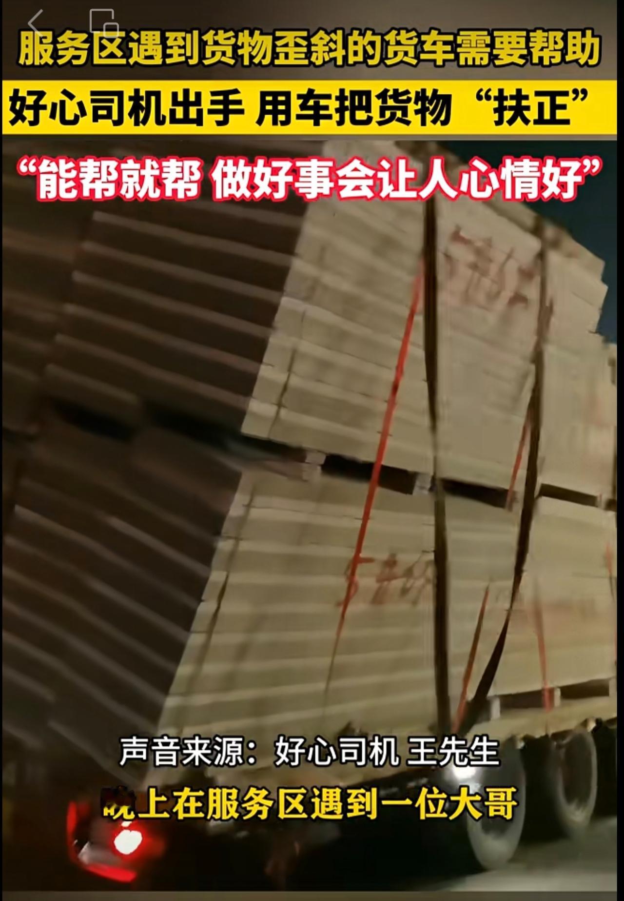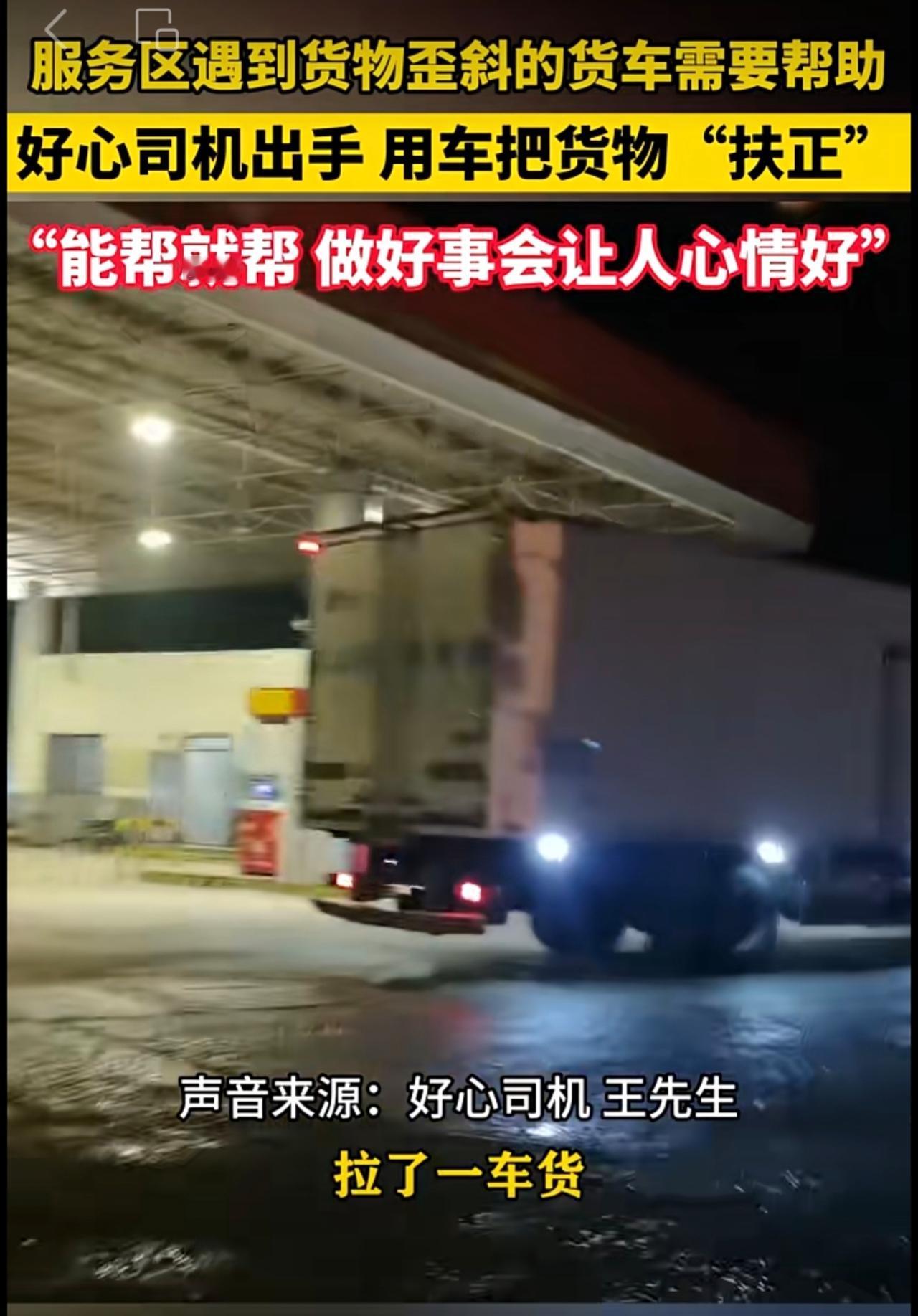 11月1日(报道)G2京沪高速。服务区遇到货物歪斜的货车需要帮助,好心司机出手,