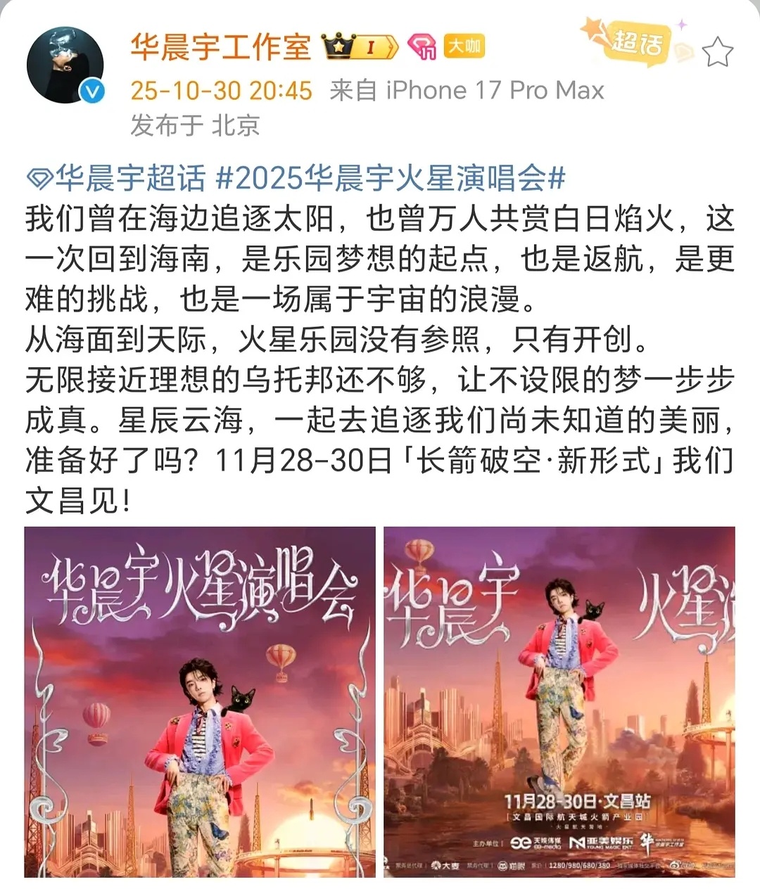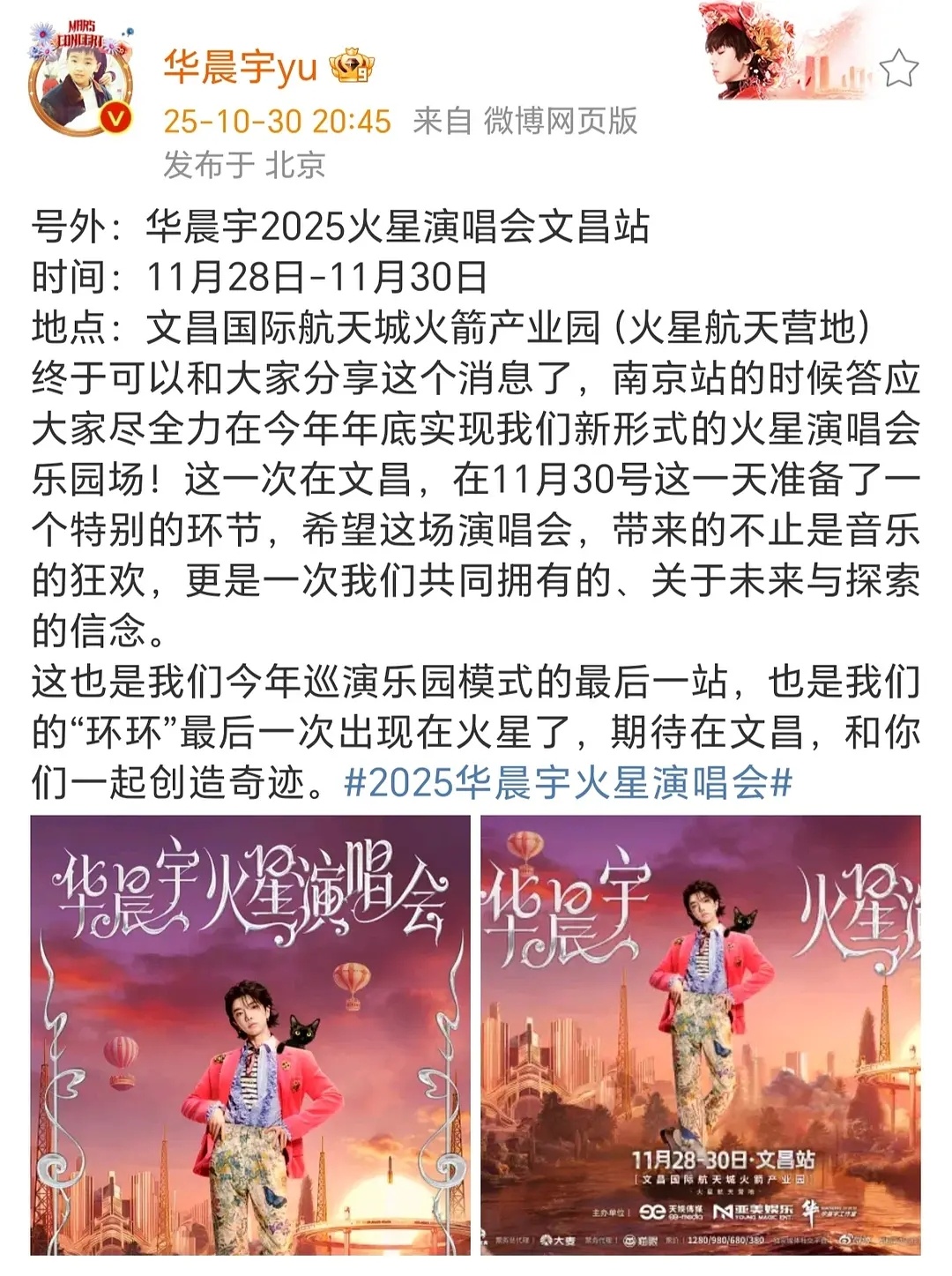 继日出演唱会后,华晨宇再官宣新形式演唱会🚀火箭场🎉