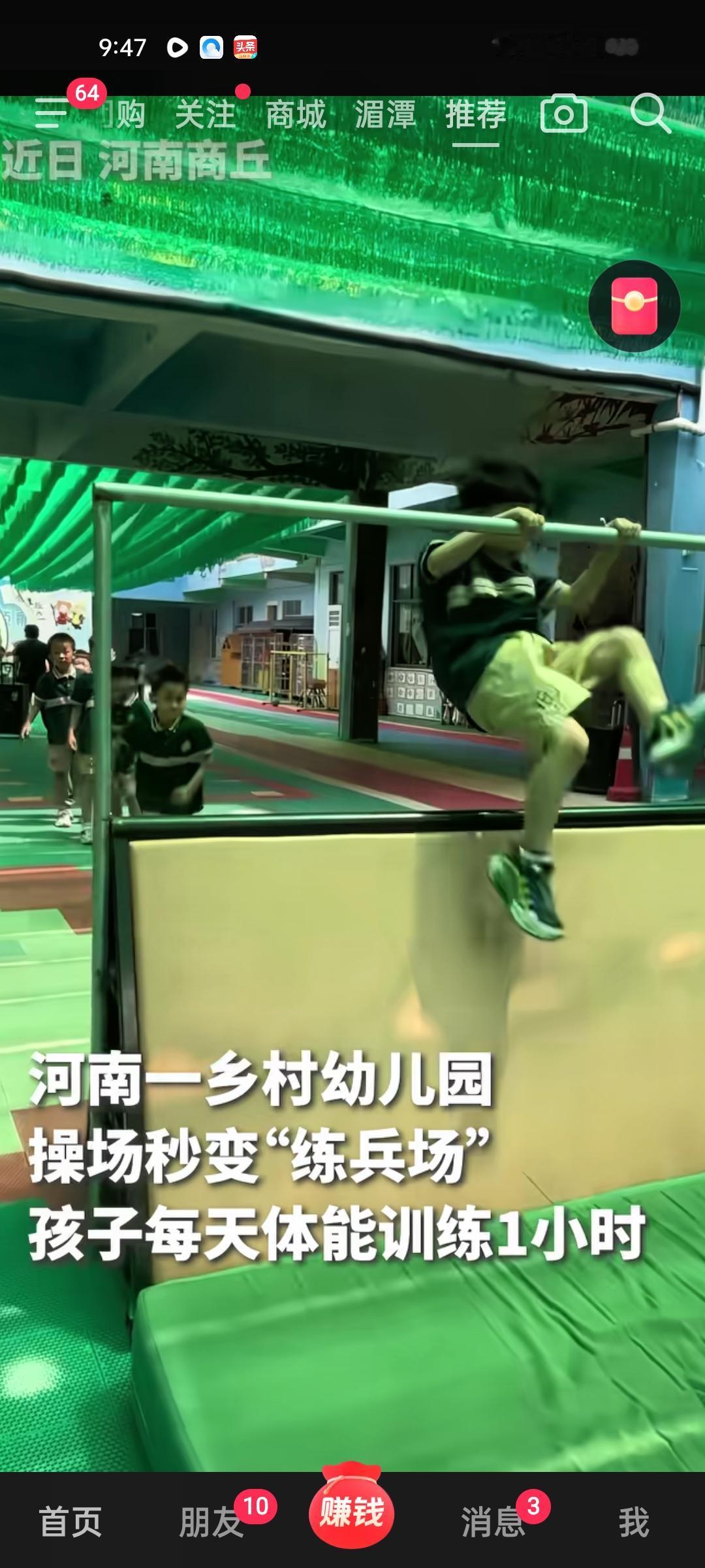 乡村幼儿园秒变″练兵场″。 你没看错,是真事,河南一乡村幼儿园,在操场设置诸多运动器械,每天用一个小时训练孩子们的体能。 一段时间下来,孩子的运动能力上来了,协调能力有了长足的进步,就连吃饭都不挑食了。 如果全国推行,你作为家长能接受吗? 幼儿园搞的活动 河南幼儿园设施 大班体能活动