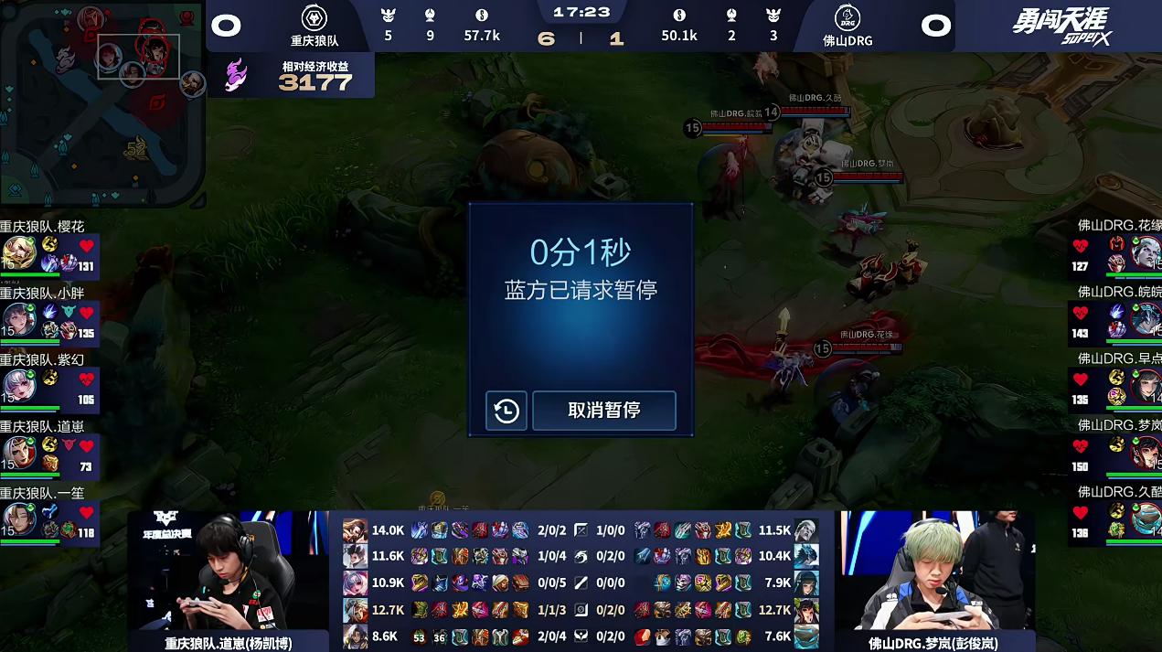 DRG/狼队第1局赛中:目前比赛出现暂停情况,请稍作等待