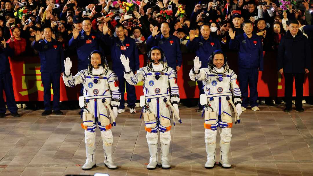 10月31日晚,神舟二十一号载人飞行任务航天员乘组出征仪式在酒泉卫星发射中心问天阁圆梦园广场举行。