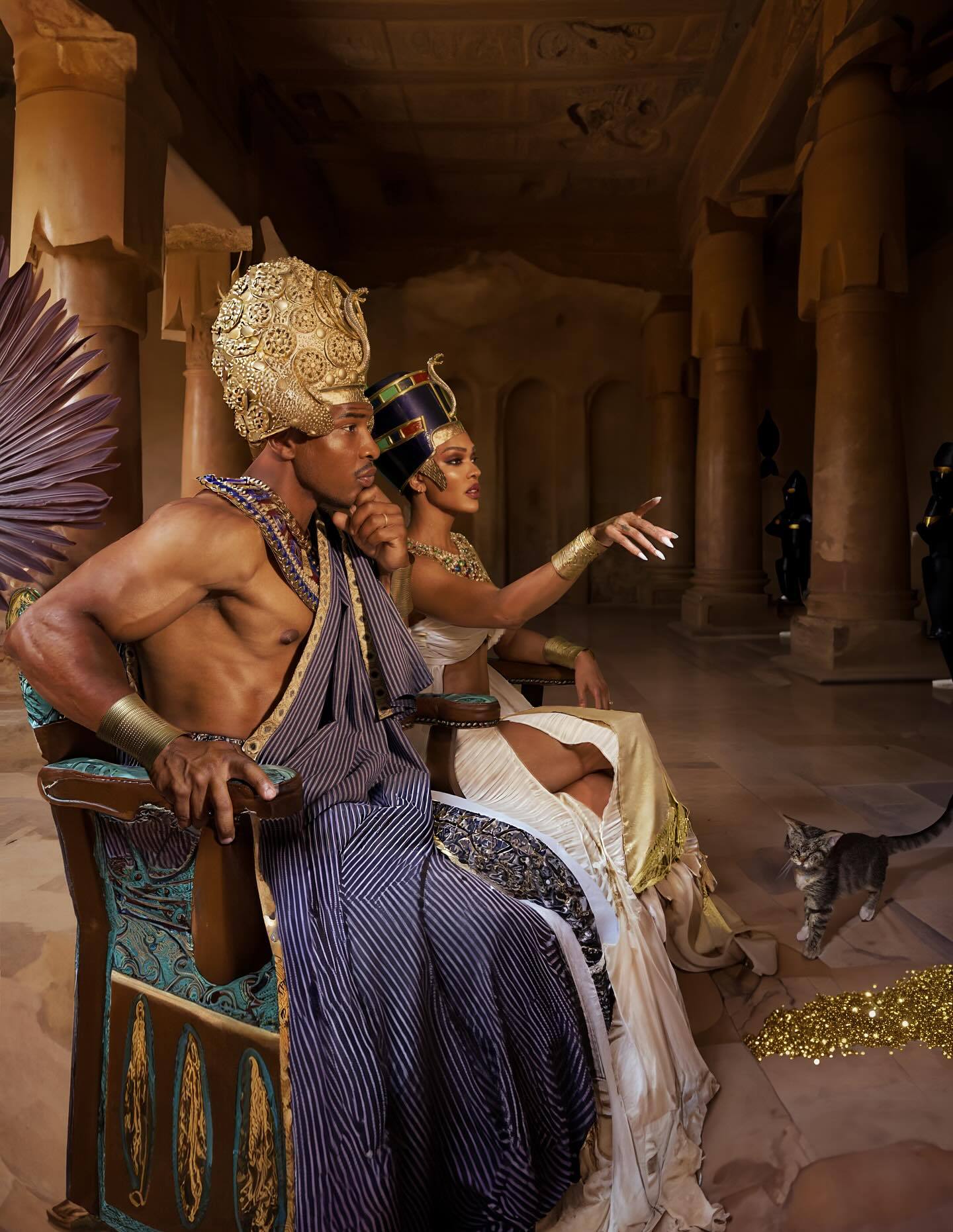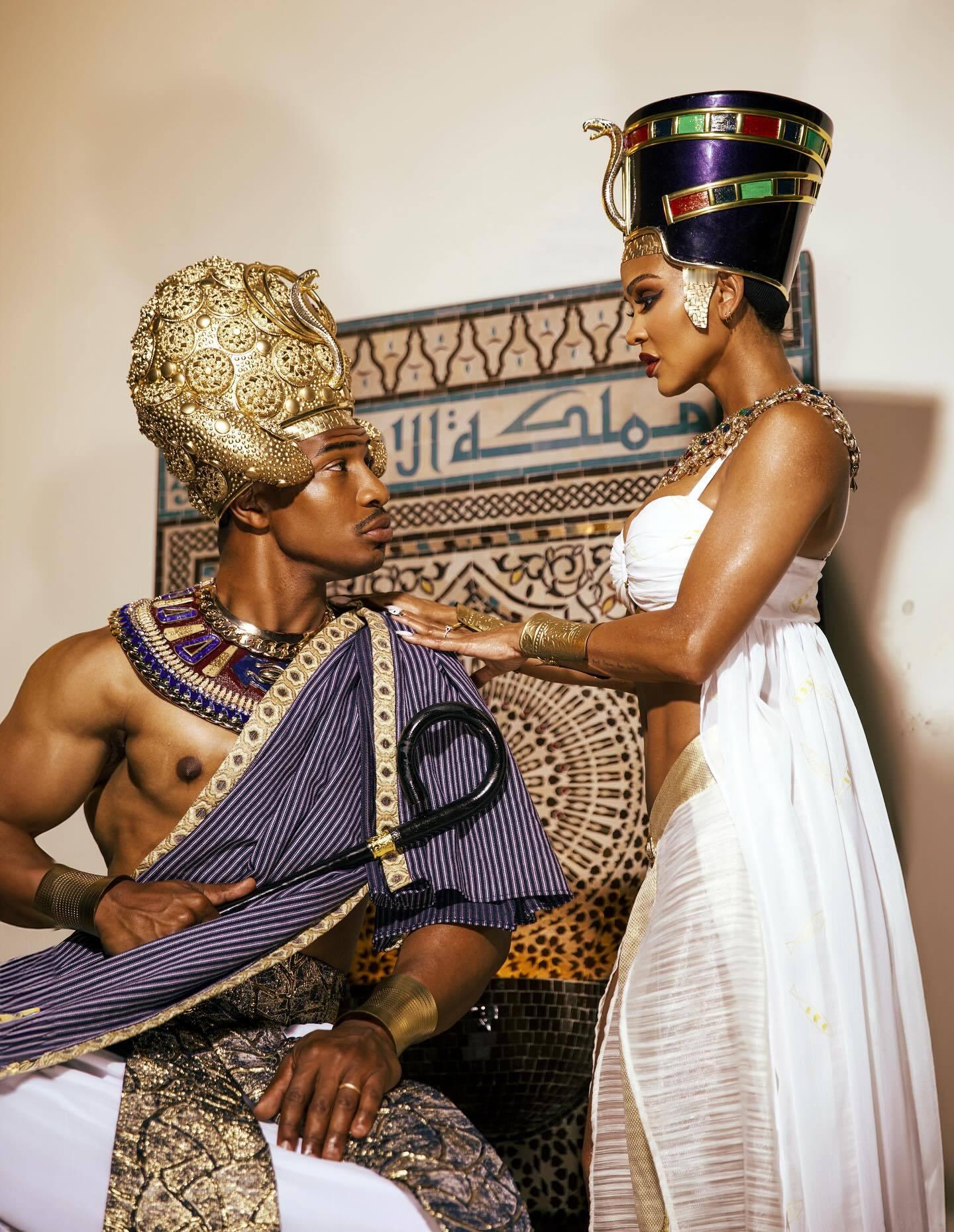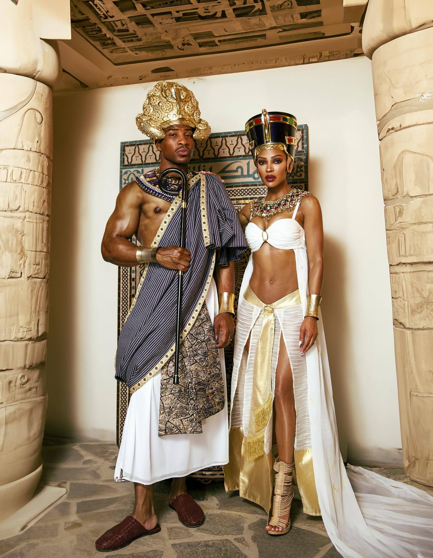 “征服者康”乔纳森·梅杰与Meagan Good万圣节cos迈克尔·杰克逊1992年《Remember The Time》MV中的法老与王后。