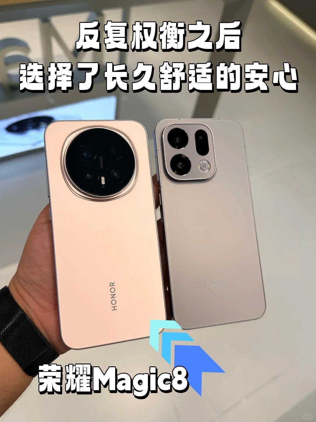 颜值与实用之争!我的购机心路全记录 来来来,分享一下这次充满纠结的购机历程!一开始,我真的被vivo X300的幸运彩配色和轻薄手感瞬间吸引,OPPO Find X9那一手磨砂质感的机身,也让我心动得放不下。 但看多了几轮之后,荣耀Magic8的天青釉反而越看越耐看——它带着光面玻璃的清透感,却用AG磨砂工艺悄悄避开了指纹尴尬,手感温润得像块玉。 真正让我做出决定的,还是回归到日常使用的现实:vivo的续航让我有点犹豫,OPPO的屏幕看久了眼睛容易累……反复权衡之后,我放下了一眼惊艳的冲动,选择了长久舒适的安心。荣耀的护眼屏和超大电池,实实在在地照顾到了我每一天的使用体验。荣耀Magic8 荣耀Magic8Pro