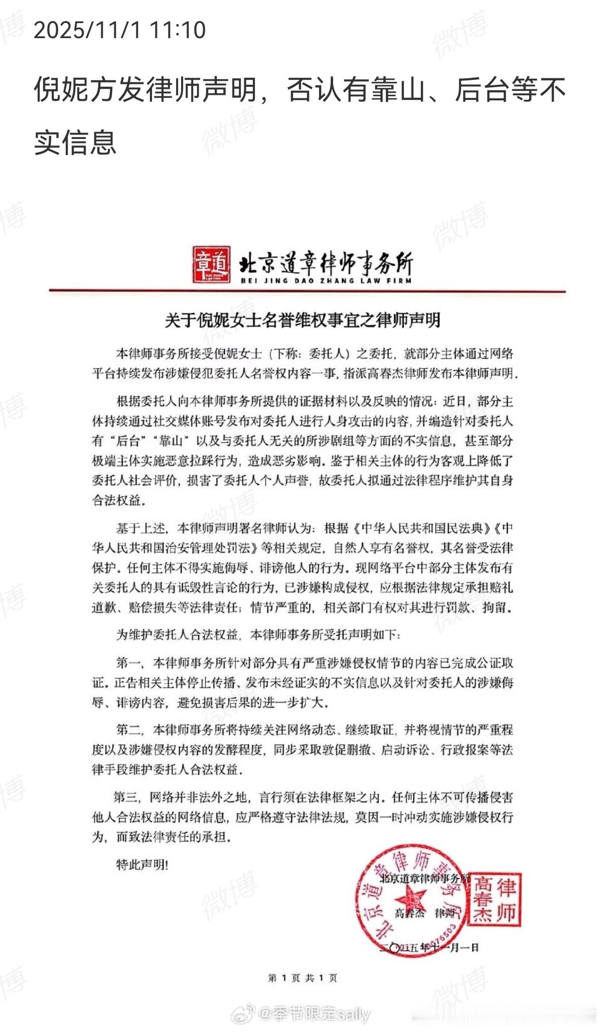 撕❶倪妮名誉维权声明否认有靠山,要告网友,评论区翻车了,说这事是王家卫和秦雯蛐蛐的,怎么还赖网友 图3