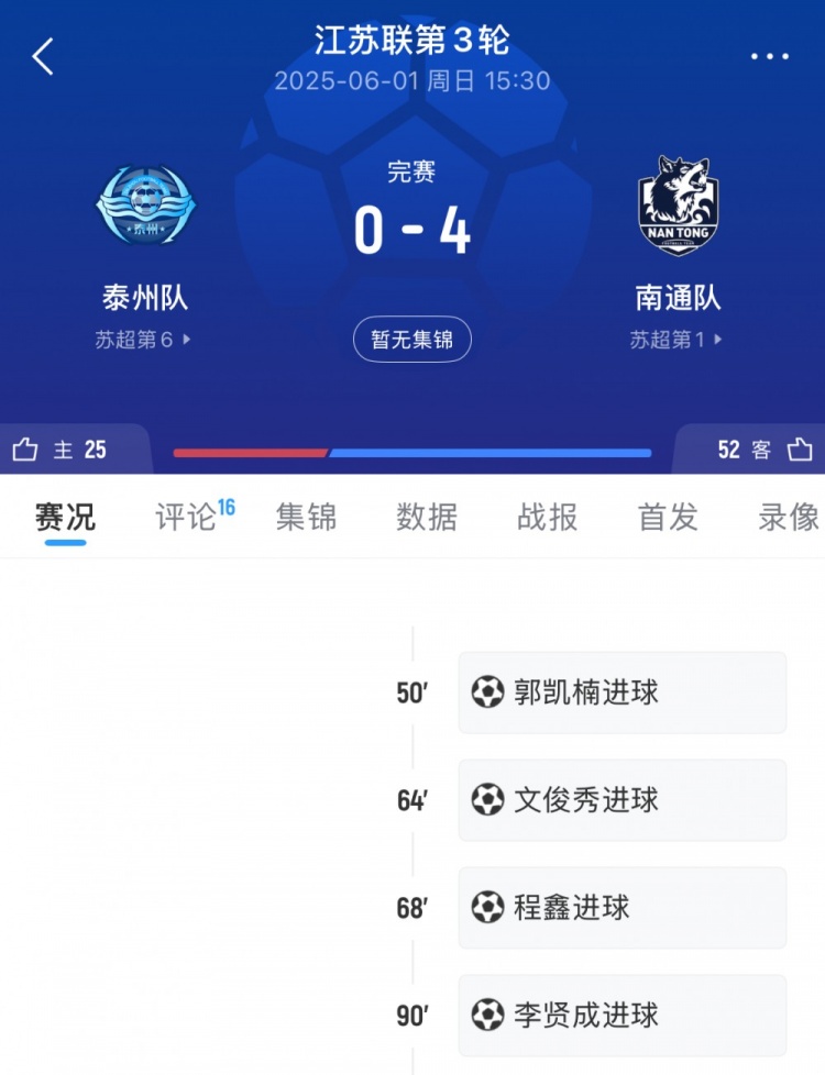直播吧11月1日讯首届苏超决赛,泰州队点球大战战胜南通队夺冠,他们联赛阶段曾0-4不敌对手。