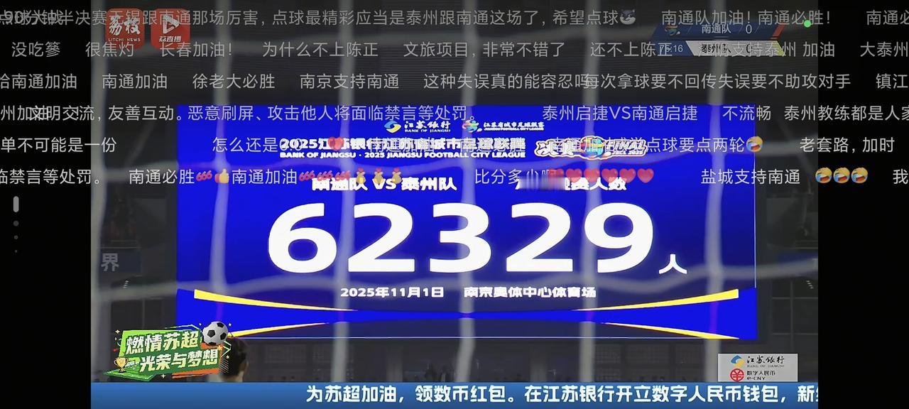 今天看苏超决赛,竟然被弹幕给气到了,总是有各种负面声音,“技术不怎么样”、“踢的乱七八糟”、“没吃海参”、“毫无观赏性”等等,看到今天上座率又创新高,场上大家热情高涨,难道这样的足球精神还不够好吗。这么多年,都快忘了足球遗忘了激情,现在终于看到了希望,不应该多鼓励么,非得回到无人问津的地步么。苏超足球赛 苏超淘汰赛