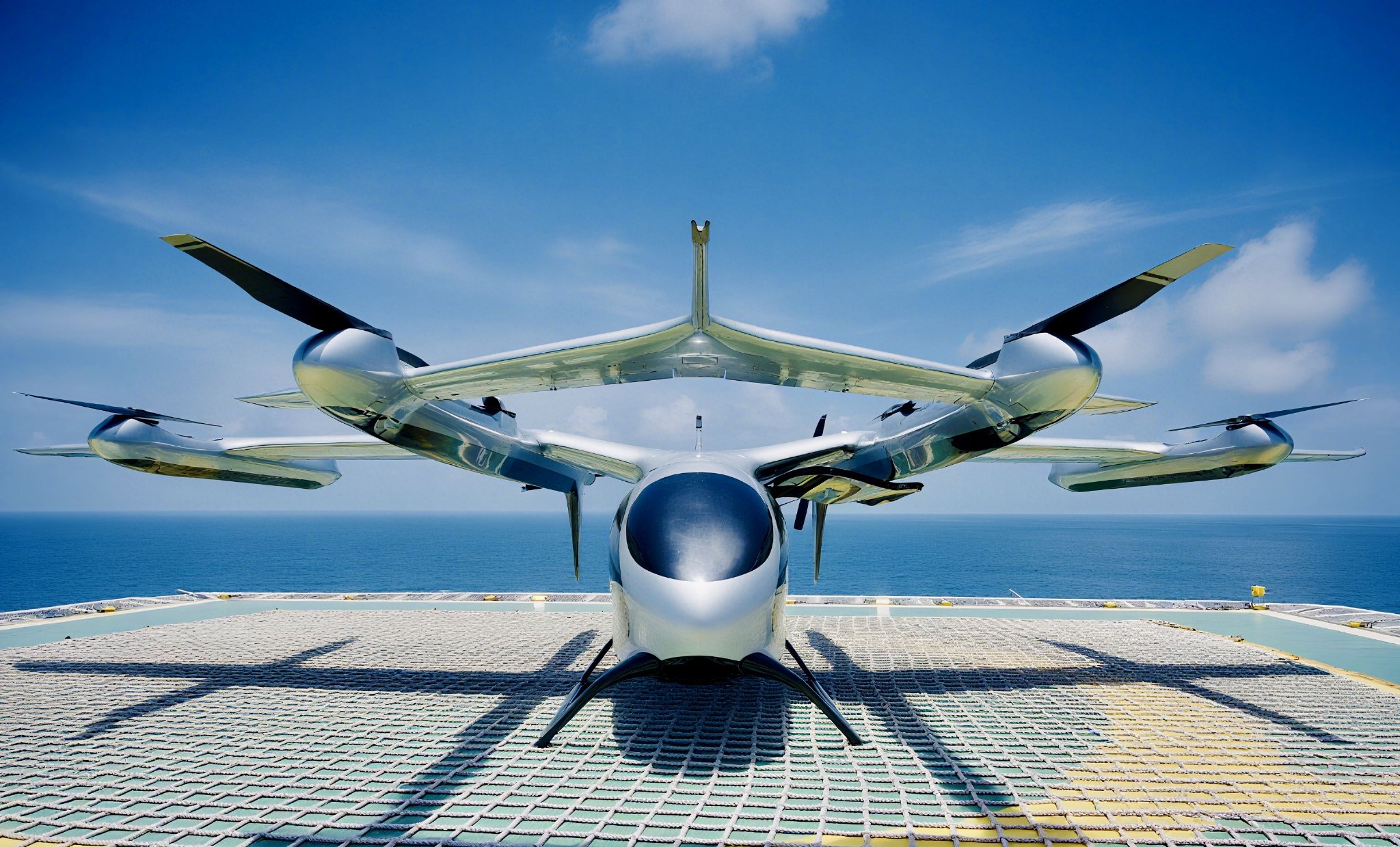 我国自主研发的大型电动垂直起降航空器(eVTOL)“凯瑞鸥”。图源:中国海油